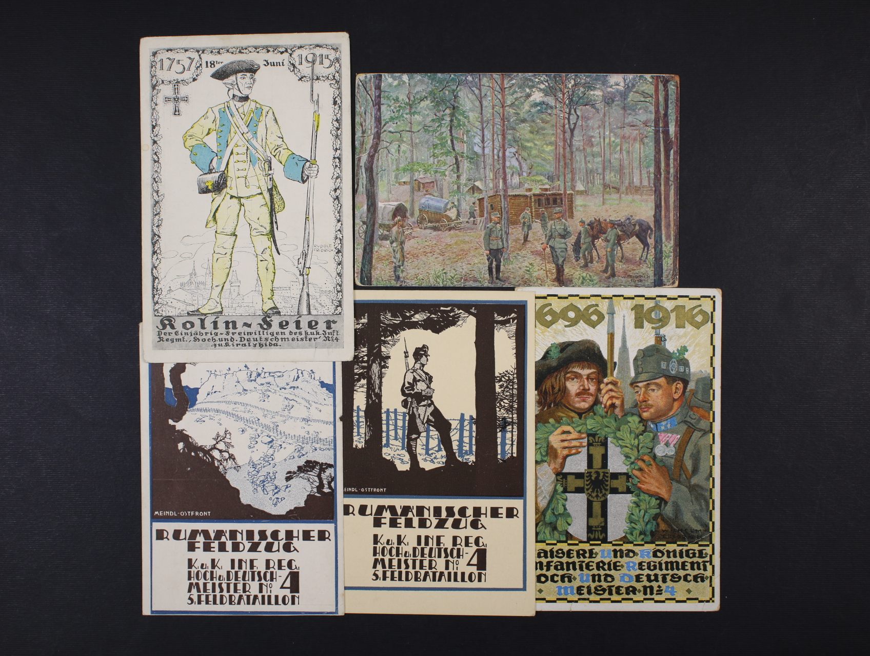 1459 Vojenské - sesrava 5 ks různých pohlednic Infanterie Regiment Nr. 4, použité i nepoužité 400