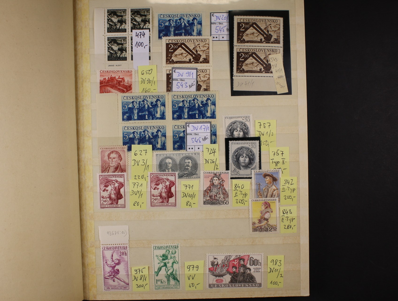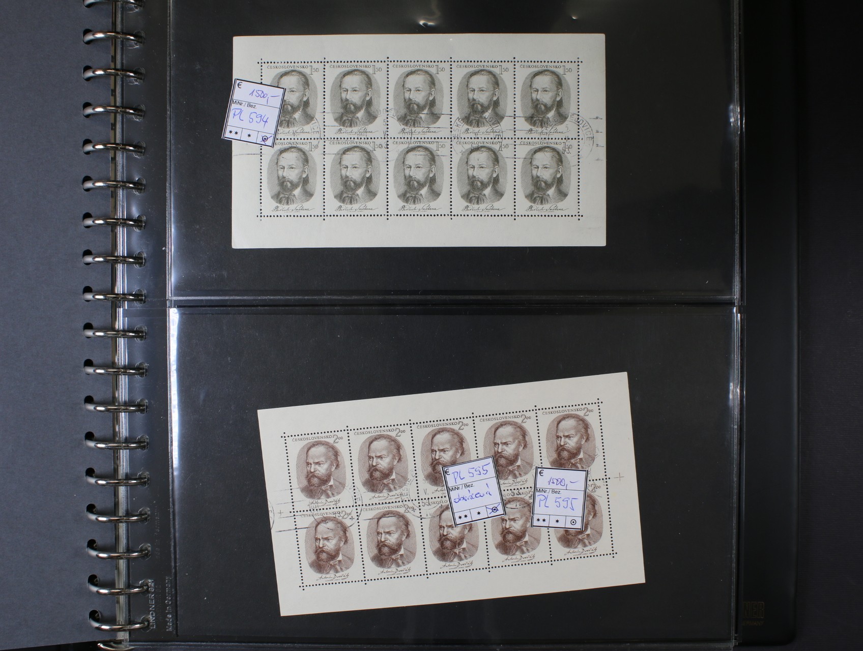 ČSR II. - mírně specializovaná sbírka známek a aršíků 1945-92, obsahuje téměř kompletní vydání známek a aršíků rozšířené o typy, barvy, barevné odstíny a DV. Např. A853-7 větší množství, některé s určenými typy, A1308 + A1400 v kompletní sestavě typů. Vysoká katalogová cena. Uloženo v 5 kvalitních kroužkových zásobnících Lindner.