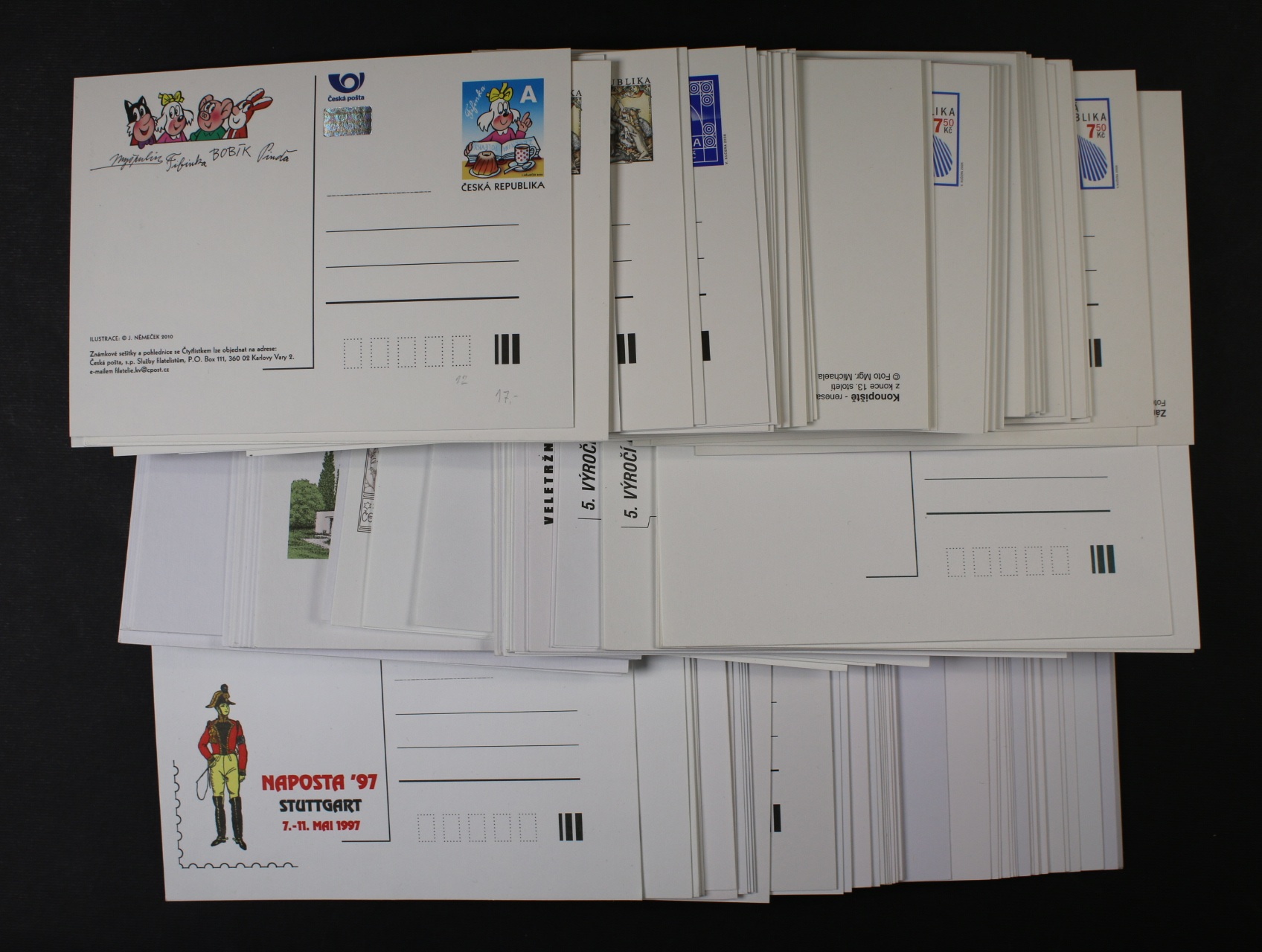 Česká republika - celiny - sbírka nepoužitých CDV s přítiskem, dále pohlednice s natištěnou zn., obsahuje mj. CDV č. 6/1-17 A + B, CDV č. 13/18-32 A + B, CDV 25/49-64 A + B, vše v nominální hodnotě cca 4000 Kč, uloženo v černé krabici