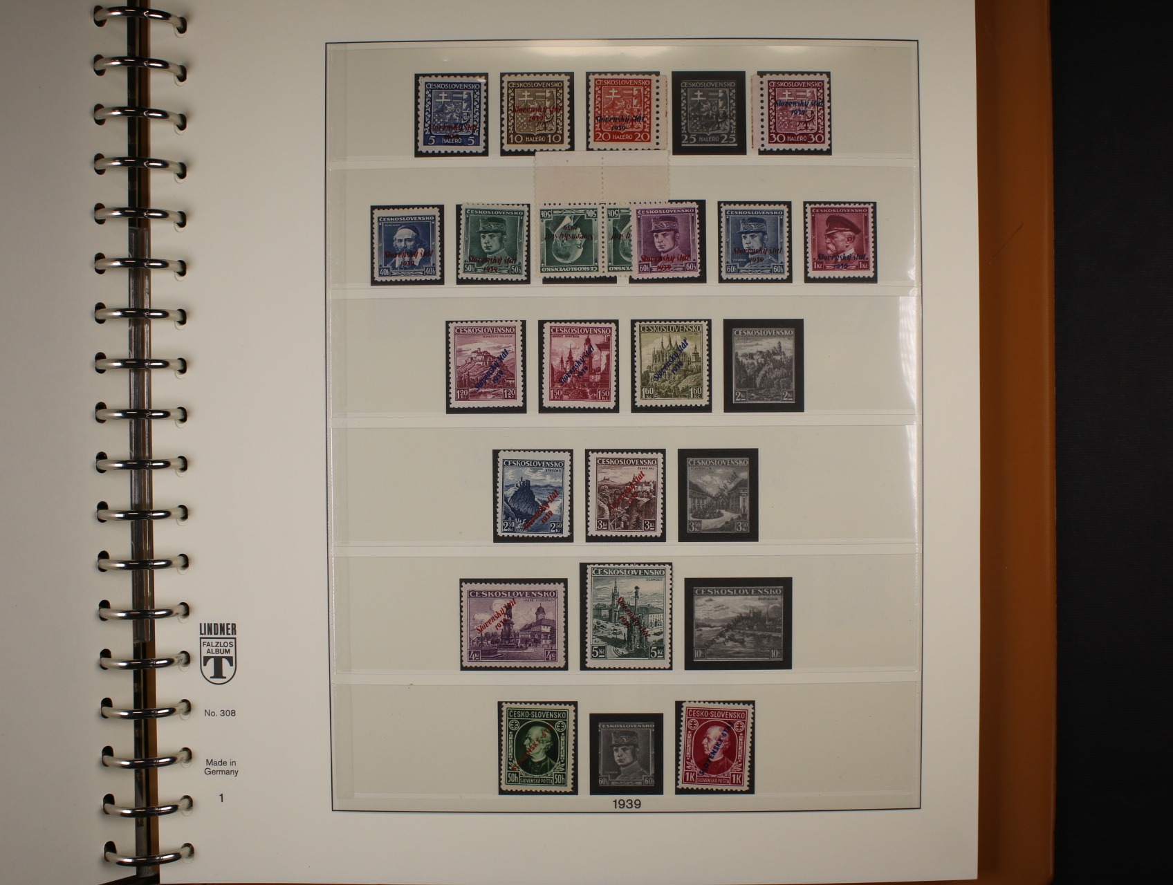 Protektorát + Slovenský štát - téměř kompletní základní sbírka Slovenského štátu + kompletní základní sbírka Protektorátu.Převážně v pěkném stavu bez nálepek, vyjímečně dvl. Uloženo v kvalitním kroužkovém zásobníku Lindner.