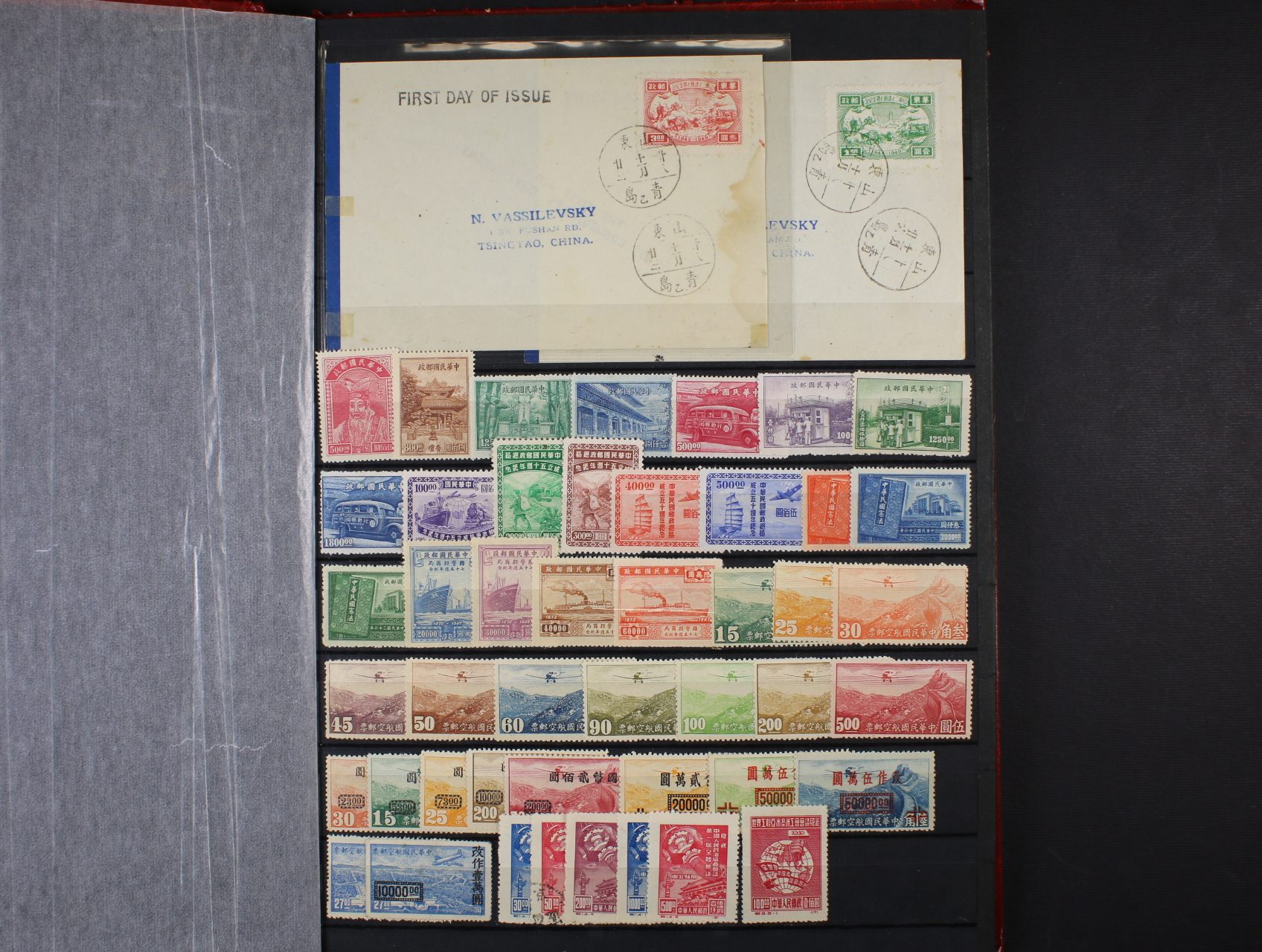 Čína - menší sbírka převážně razítkovaných zn., mj. Rybičky, Chryzantény, Sport, uloženo v červeném zásobníku A 4