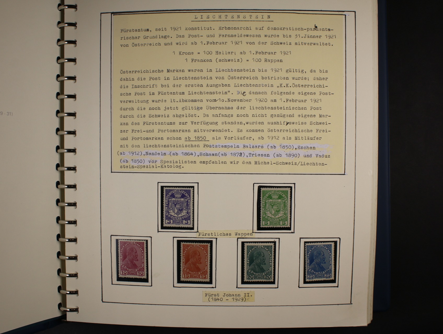 Lichtenstein - nekompl. sbírka zn., aršíků, převážně svěžích z let 1917 - 1999, několik sérií razítkovaných, m.j. Mi. č. 172 - 182, Bl. Mi. 3 a Bl. 5 (v ceně 260 EUR, ostatní razítkované nepočítány), sbírka dále obsahuje zn. Mi. č. 268 - 76, 304 A, 305 B, 398, TL 1151, kat. cena min. 2400 EUR, uloženo na listech Lindner ve dvojích kroužkových deskách