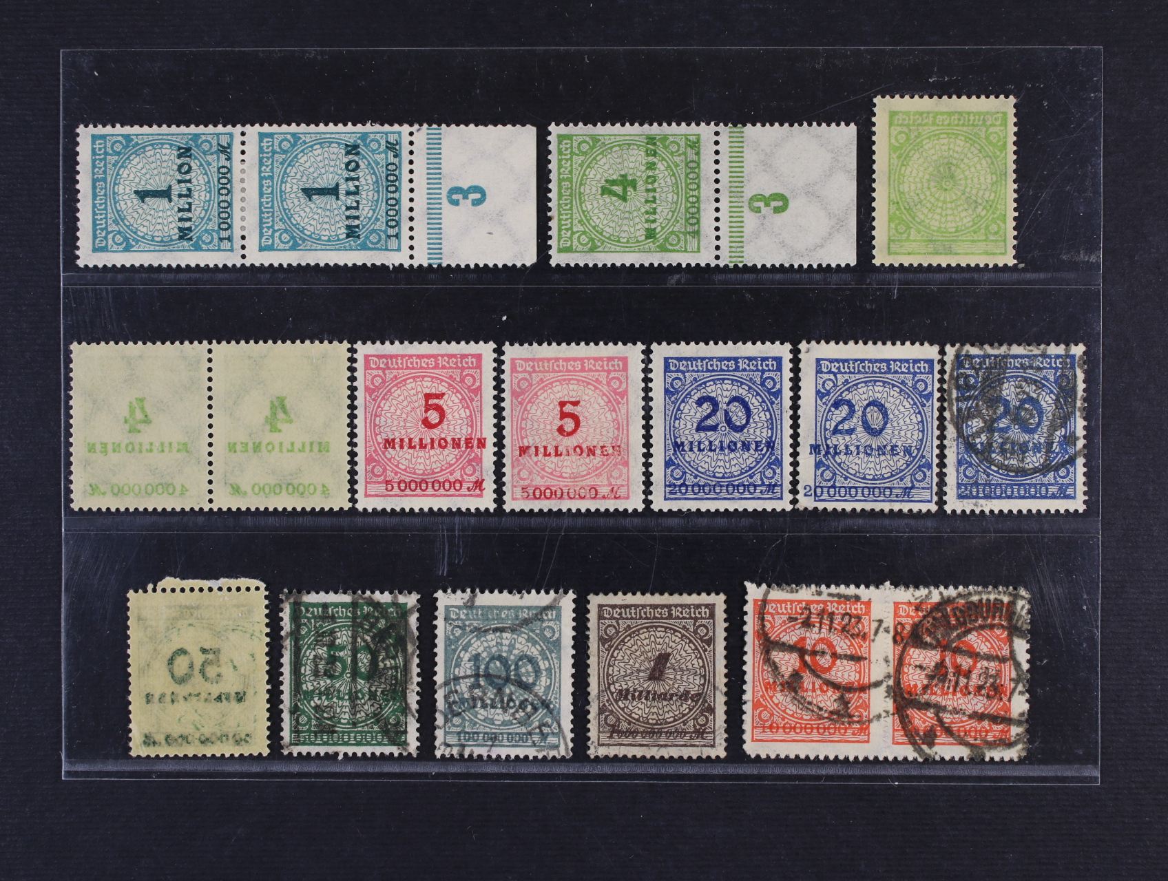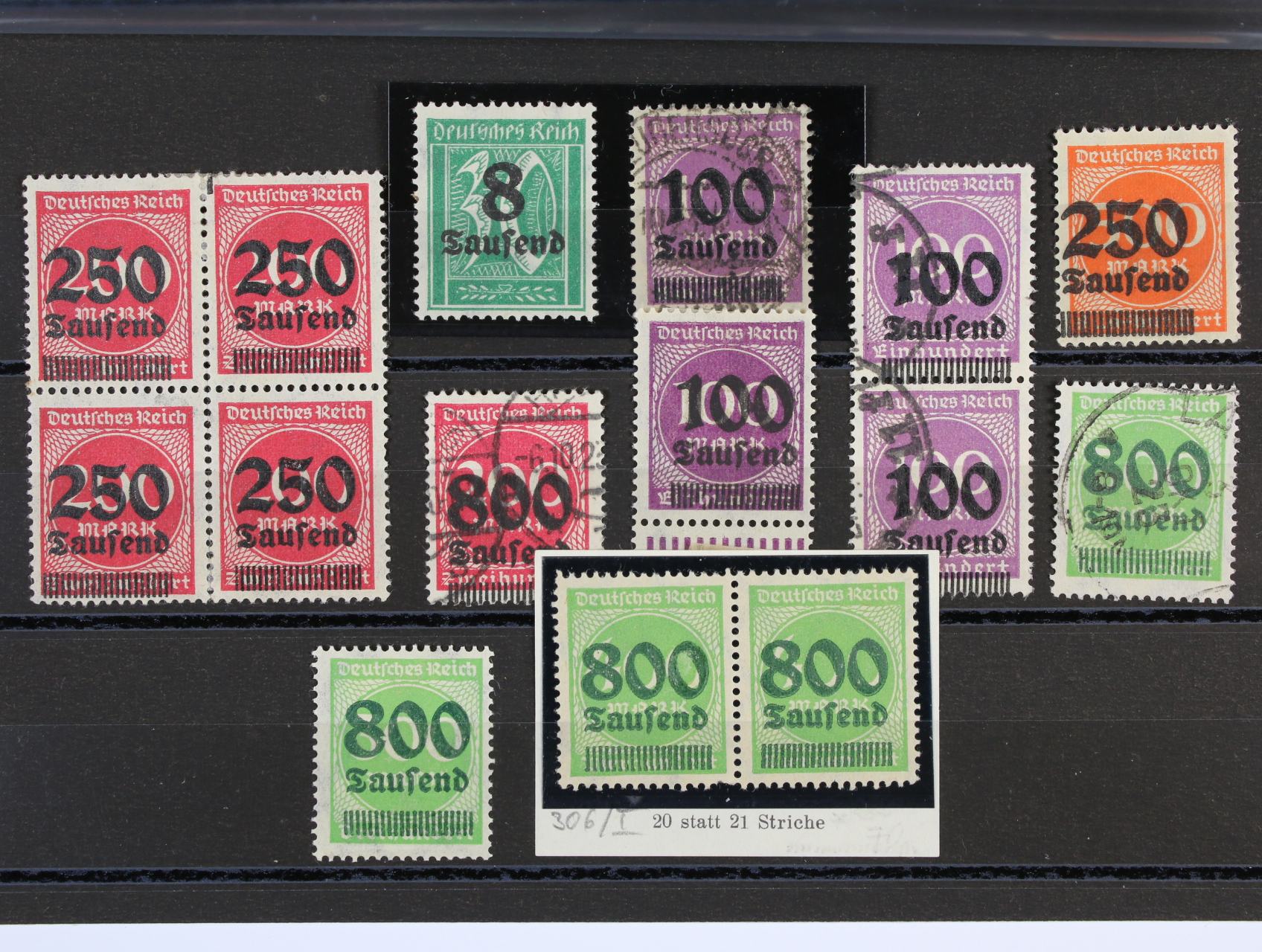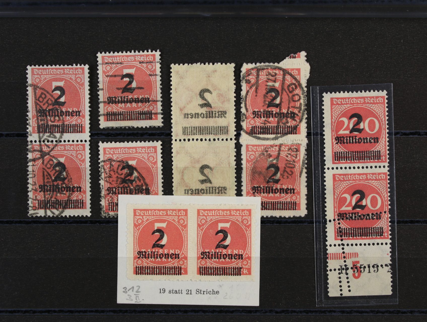 1655 sestava 17 ks zn. Mi. č. 314 A, 316 A, se stroj. obtiskem známky + vodorovná dvoupáska se stroj. obtiskem přetisku, zn. Mi. 317 A bar. odstíny, zn. Mi. 318 B ve vodorovné dvoupásce s raz., 319 A - posun přetisku, 321 A - stroj. obtisk přetisku, 322 A, 325 A 1000