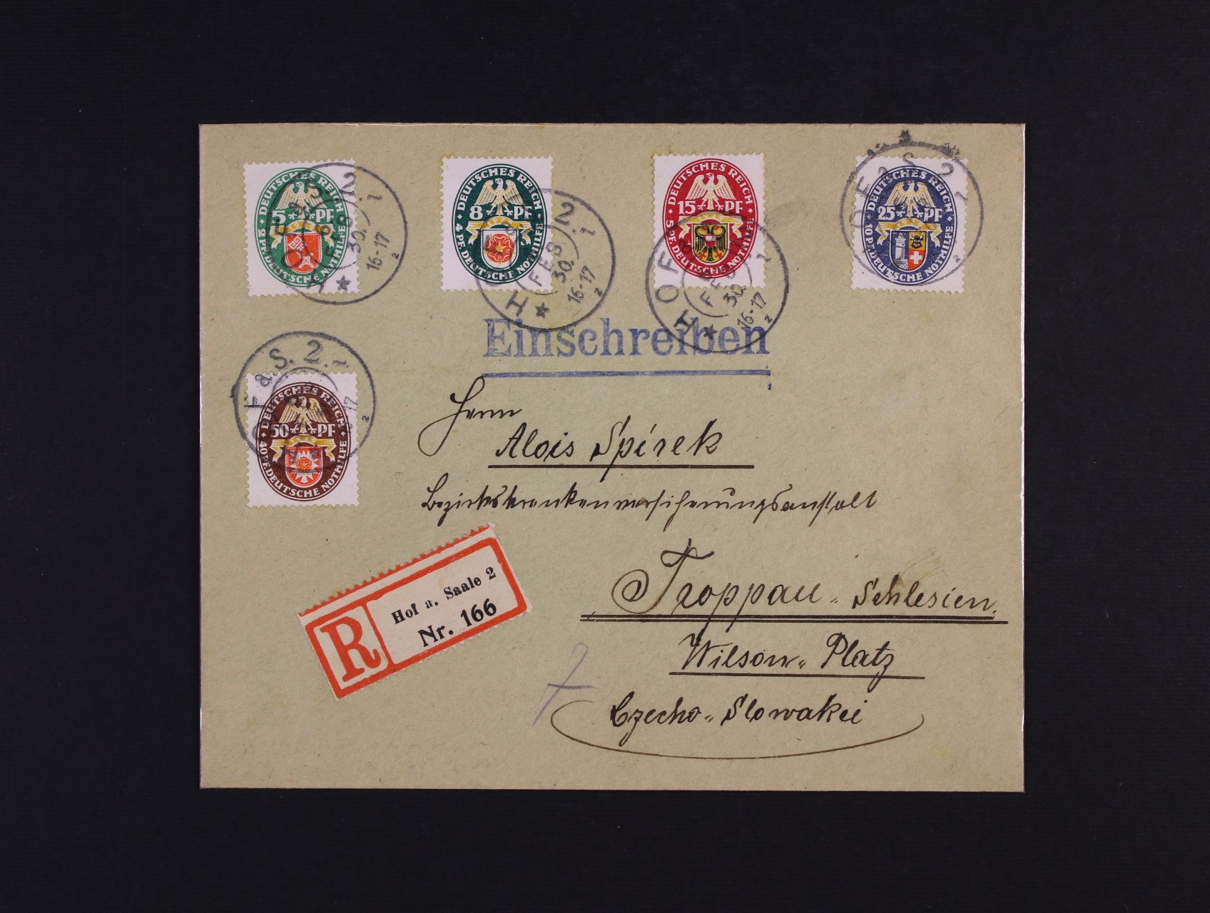 1657 R-dopis do Opavy frank. zn. Mi. č. 430 - 34, pod. raz. HOF a. S. 2.- 6.FEB.1930, zajímavé 600