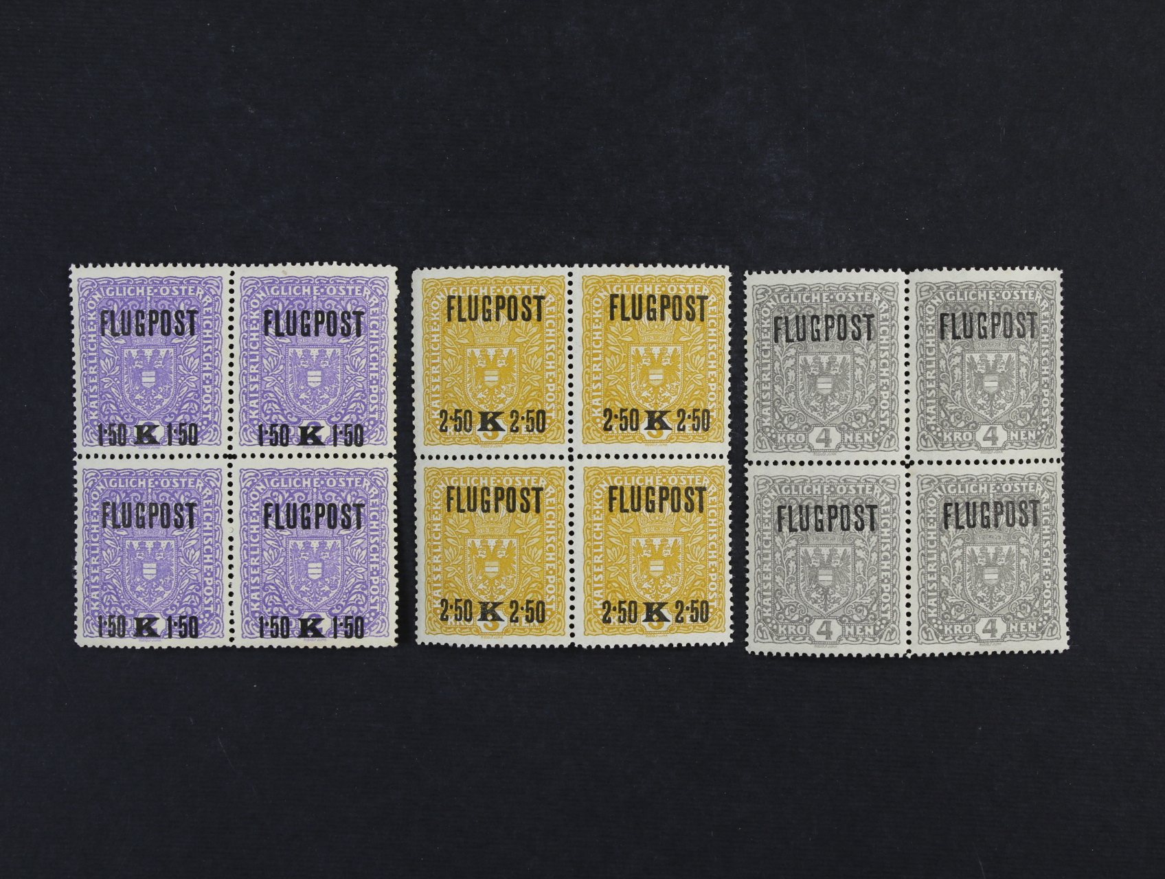 zn. Mi. č. 225y II A - 227y II A ve čtyřblocích, kat. Pofis 2200 Kč