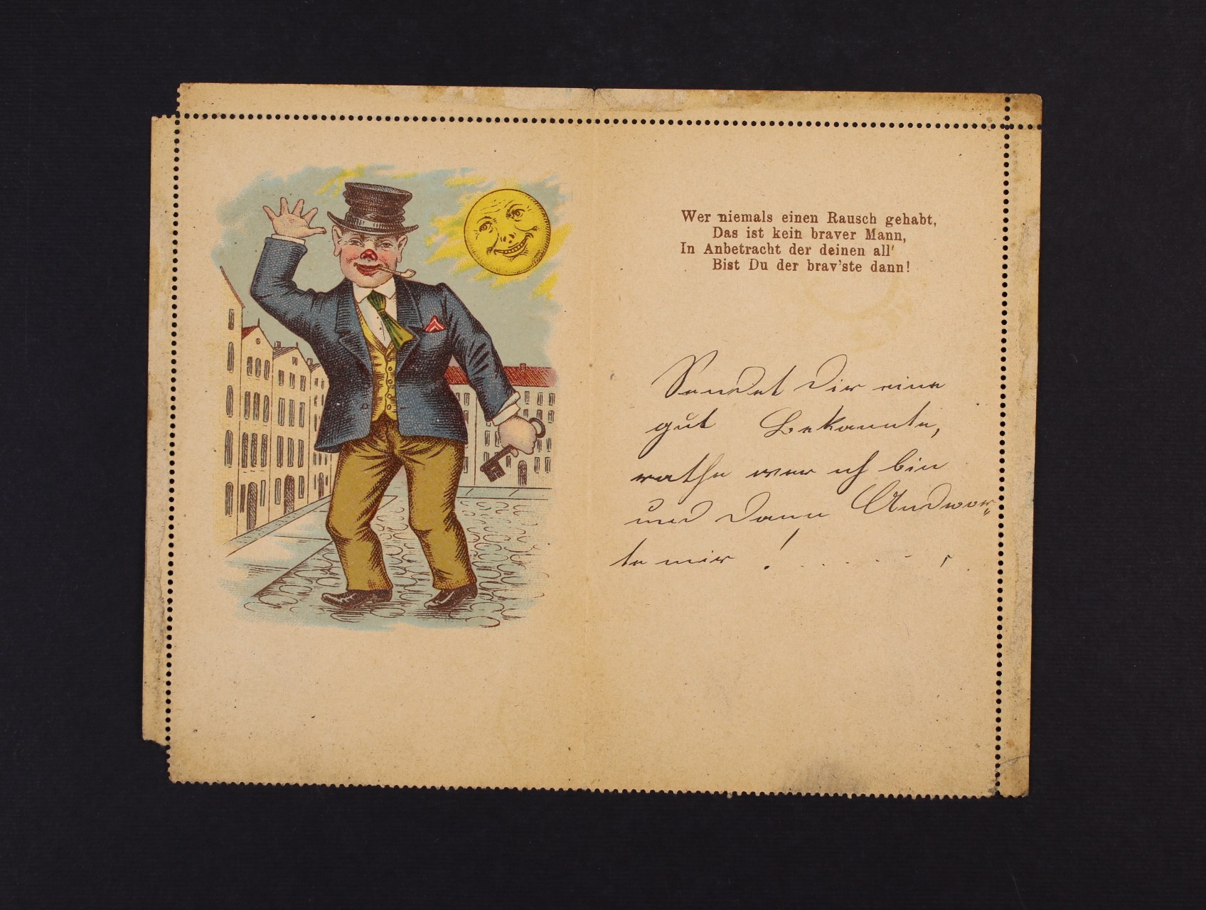 soukr. zálepka v místě, frank. zn. Fe. č. 52, pod. raz. BRÜNN 2 31.12.98, přích. raz. BRNO 1 31.12.98, na vnitřní části bar. žertovný litograf. přítisk, zajímavé