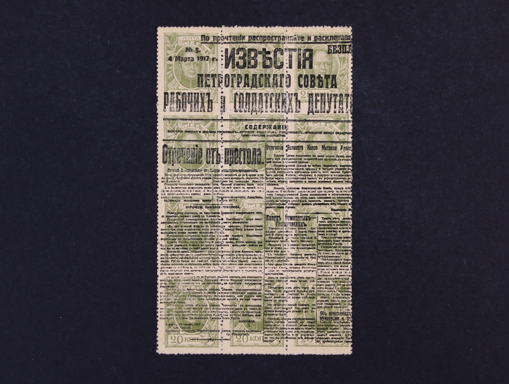 1820 zn. Mi. č. 90 ve 12ti-bloku se zmenšeným černým přetiskem IZVESTIJA k jejich I. vydání, zajímavé 1500