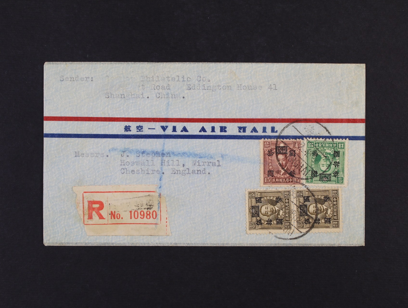 1868 Čína - R-dopis do Anglie frank. zn. Mi. č. 703, 707 ve svislé dvoupásce, 707 A (jen raz. zn. 190 EUR), pod. raz SHANGHAI 6.2.48, průch. raz., zajímavé 900