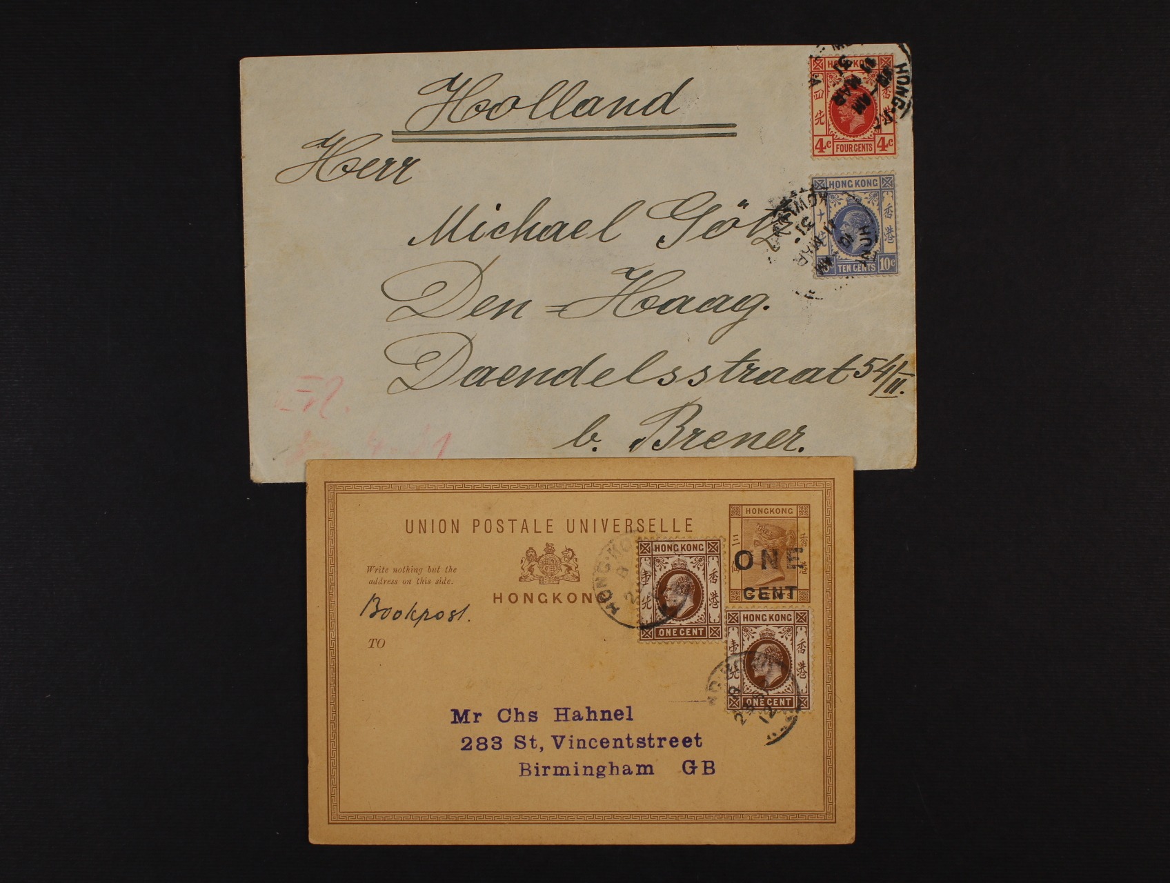 1873 Hong Kong - dopis do Holandska frank. zn. 4c a 10c, pod. raz. HONG KONG 11.MAR.31 a celina 1c dofrank. dvěma zn. 1c s pod. raz. HONG KONG 23.SEPT.12 600
