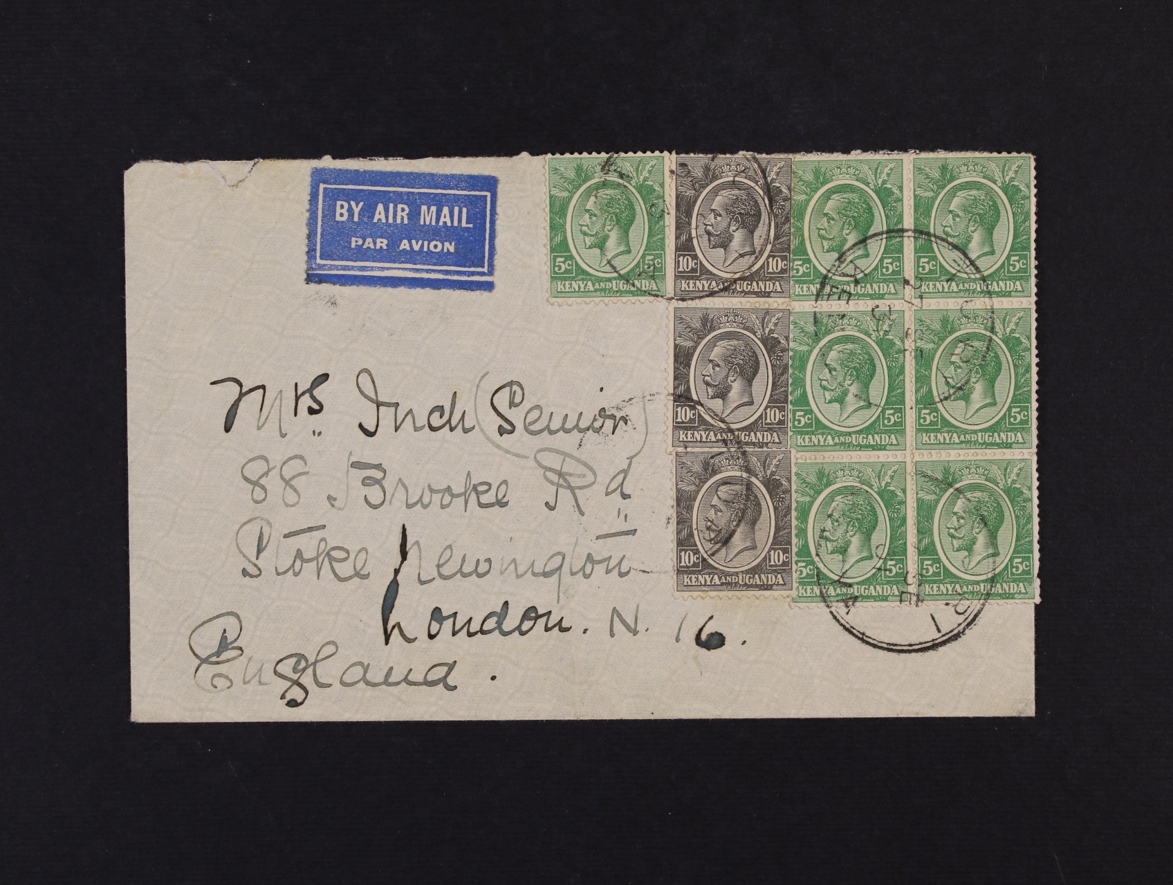 Kenya a Uganda - let. dopis do Londýna, zajímavá frankatura Jiří V., pod raz. TURI 27.SE.1931