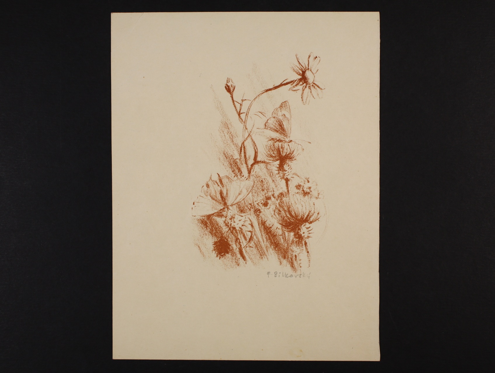Drobná grafika - Bílkovský Frant. - signovaný lept Luční kvítí ve formátu 15 x 20,5 cm,