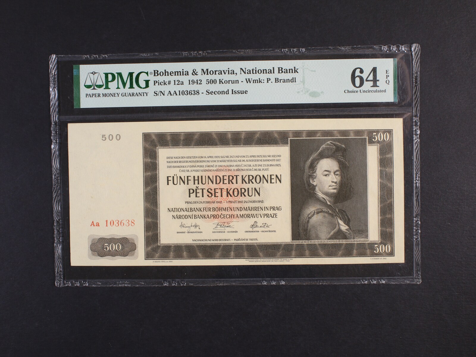 500 K 24.2.1942 II.vydání série Aa, Ba. 36, Pi. 12a, PMG 64, první série