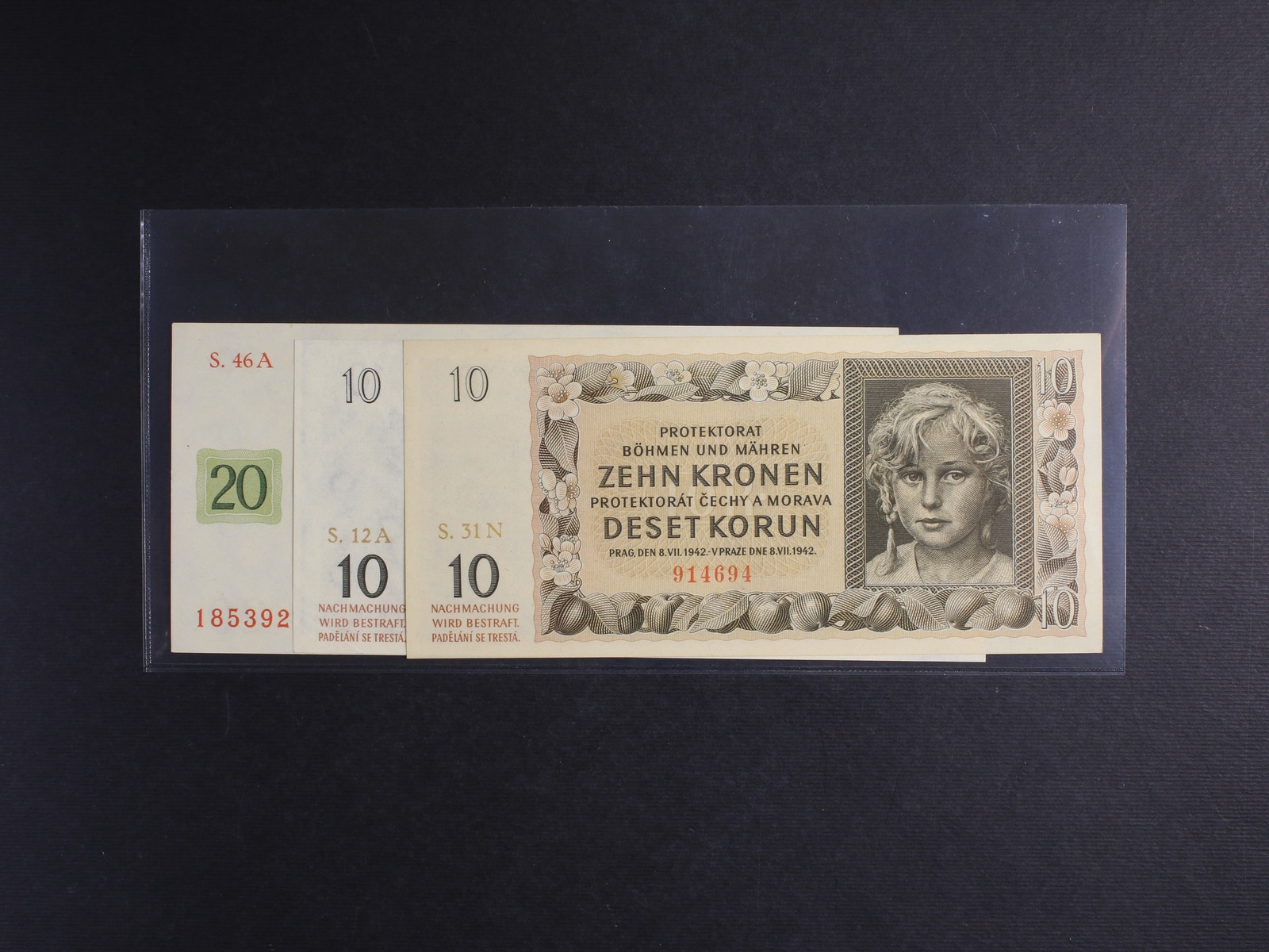 10 K 8.7.1942 série 12 A, 31 N, 20 K 24.1.1944 série 46 A, Ba. 37a, 37b, 40a, Pi. 8a, 9a, 3 kusy