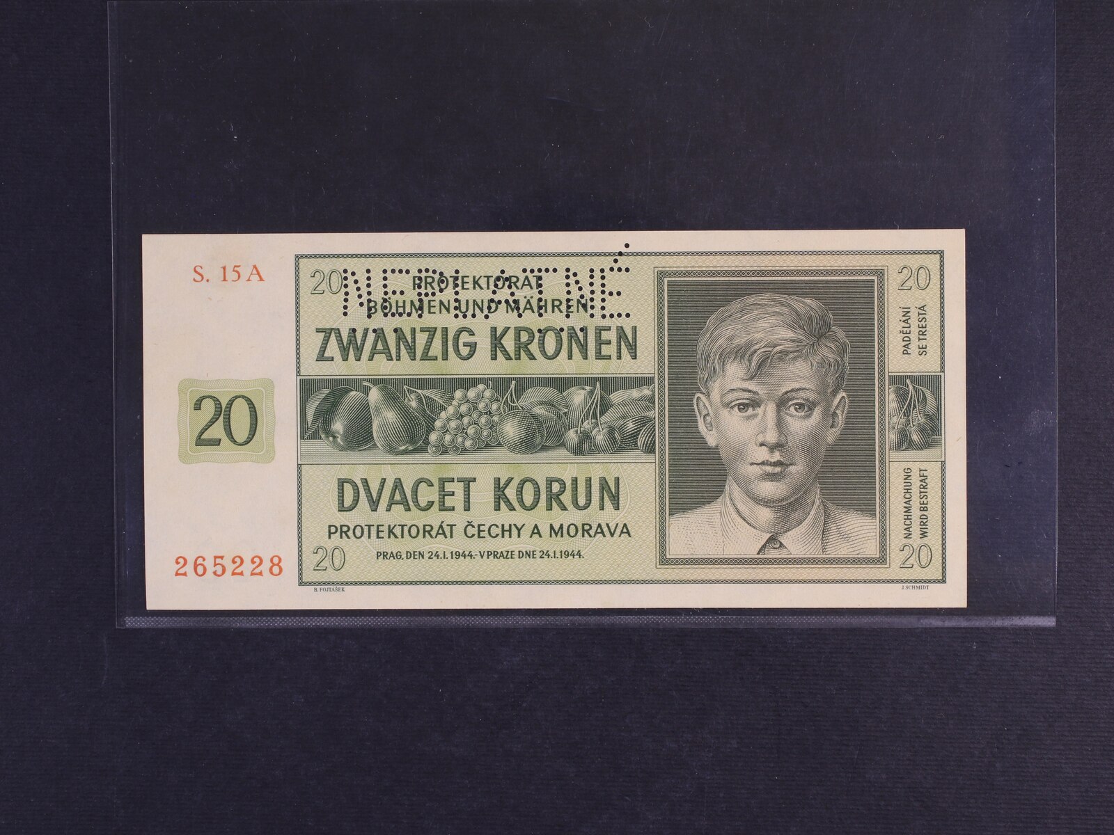 20 K 24.1.1944 série 15 A s perf. NEPLATNÉ, Ba. 40a, Pi. 9s, He. 40aS2