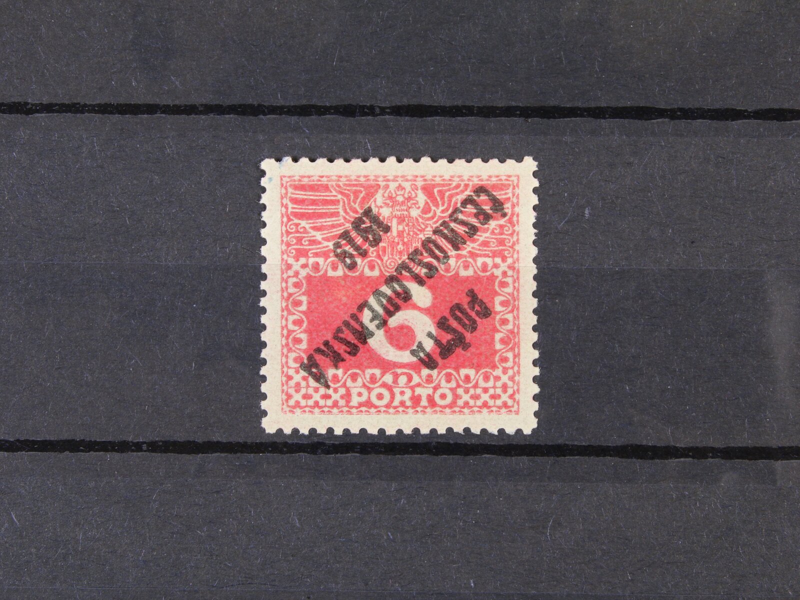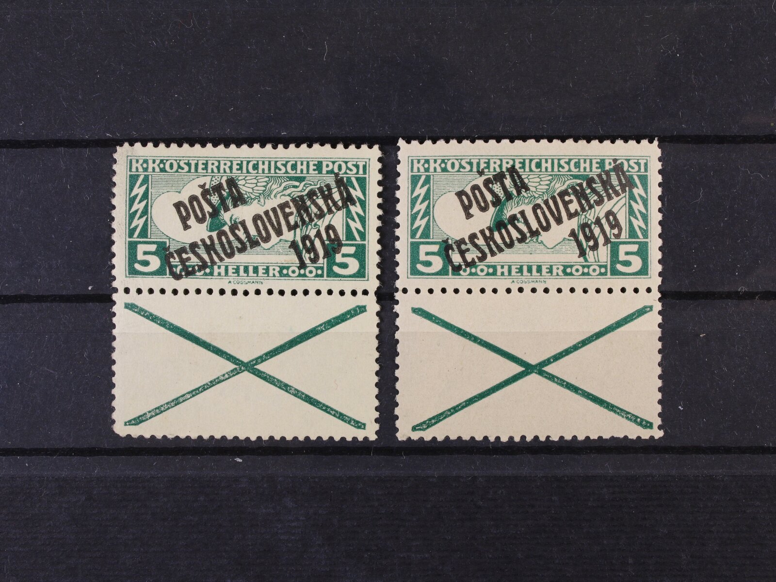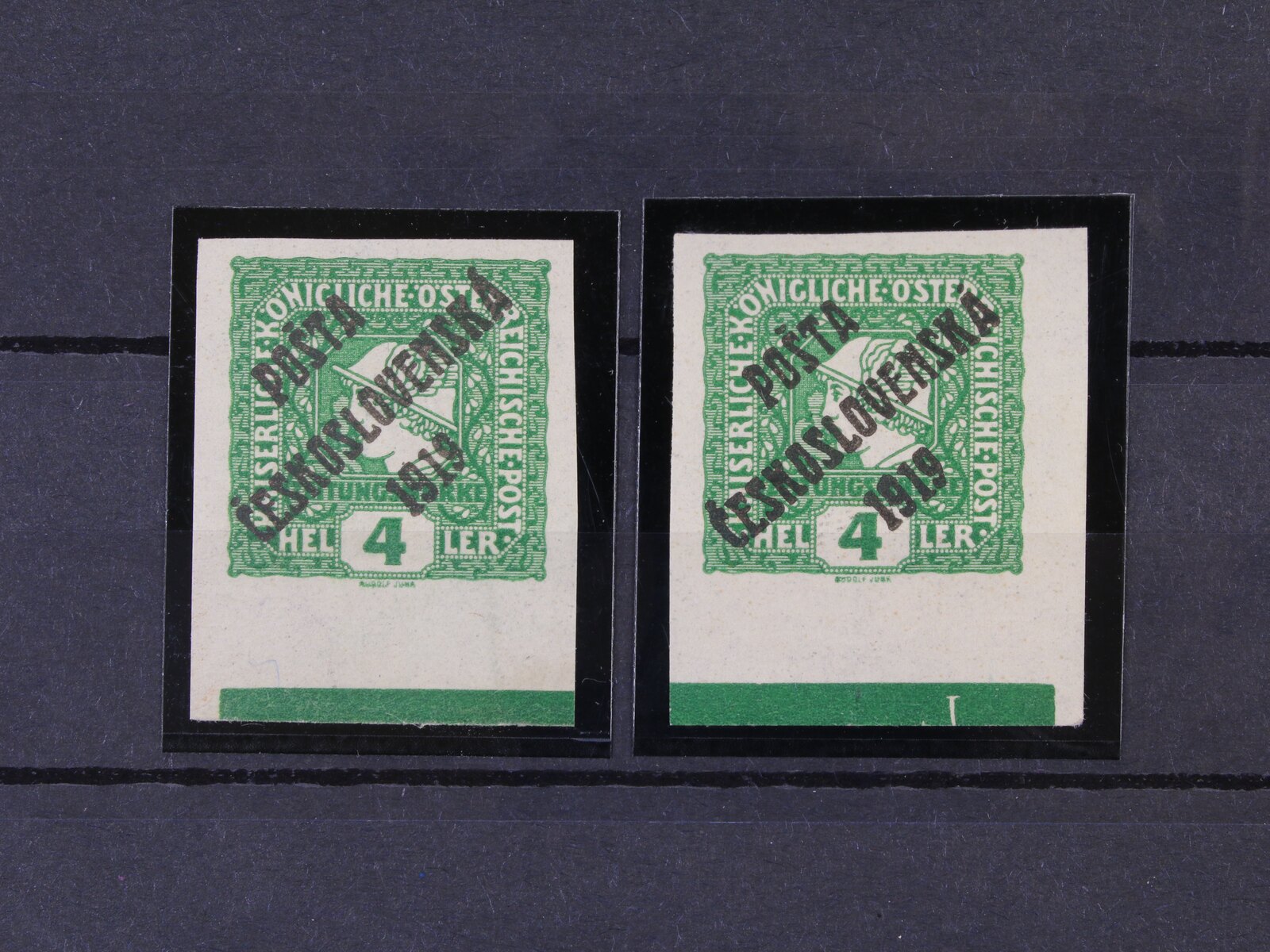 294 zn. č. 61 - levý a pravý spodní roh. kus s otiskem lišty ve spodním okraji a DZ jeden vryp do lišty pod ZP 100 300