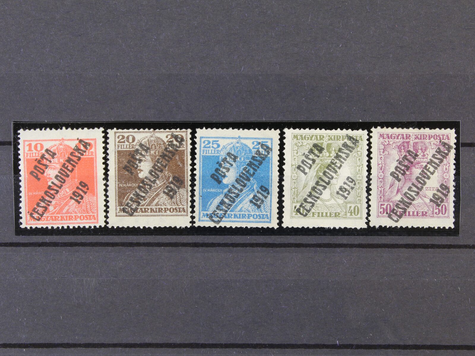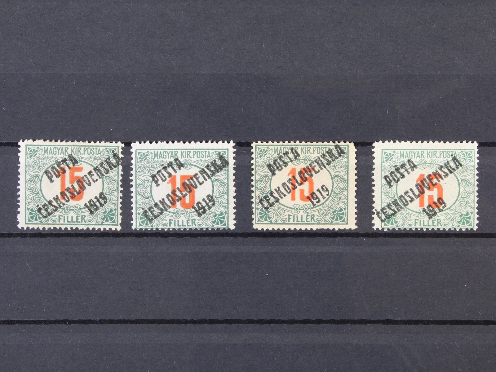 350 zn. č. 119 - 123, typy přetisku IV, I, II, III, IV, zn. č. 123 zk. Karásek 1000
