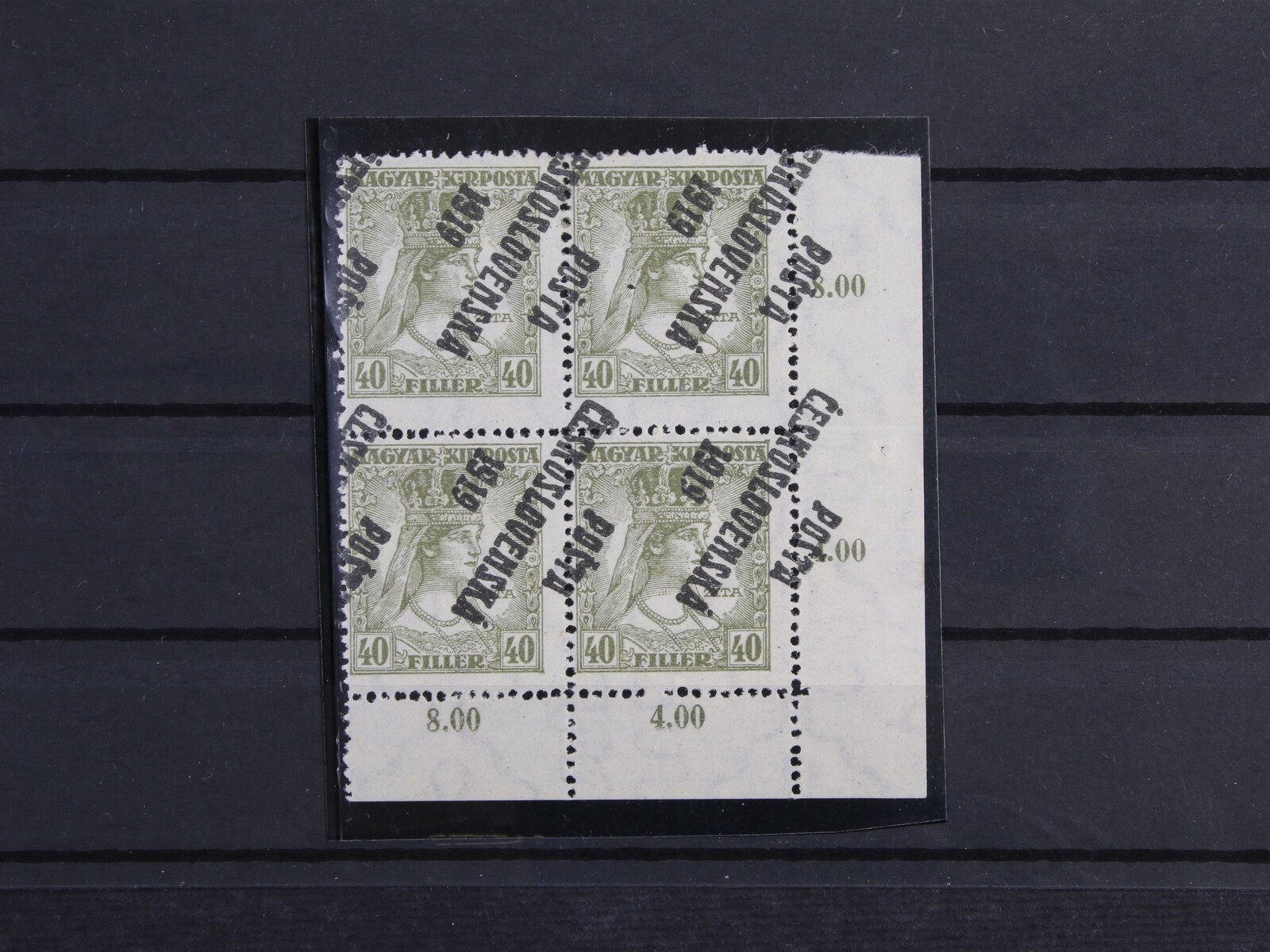 352 zn. č. 122 Pp převrácený přetisk - pravý spodní roh. čtyřblok s počitadly, zk. Gilbert, Karásek, Vrba 3000