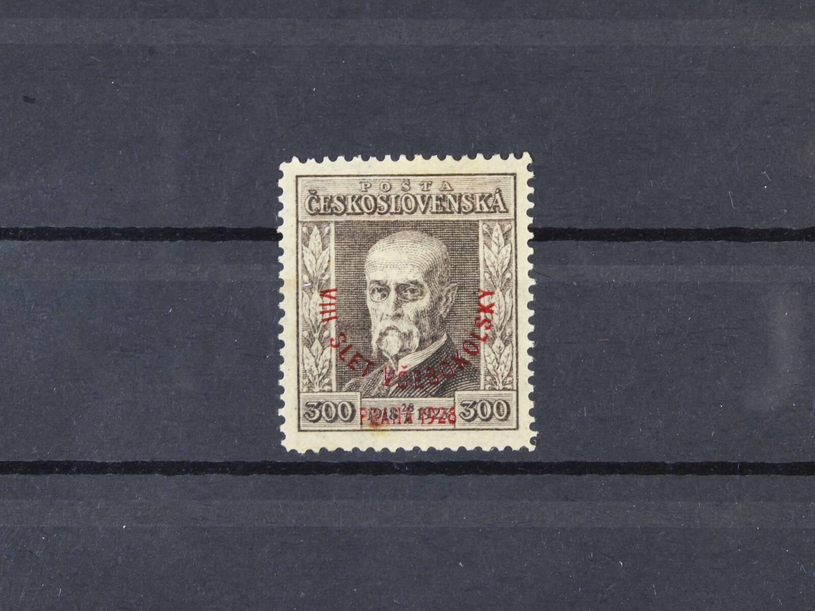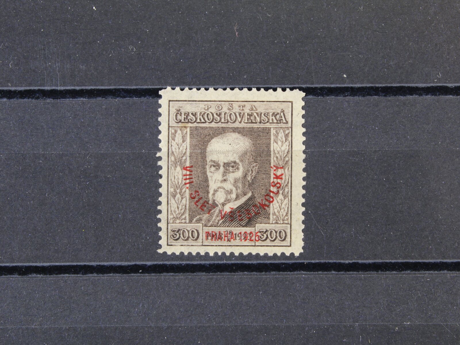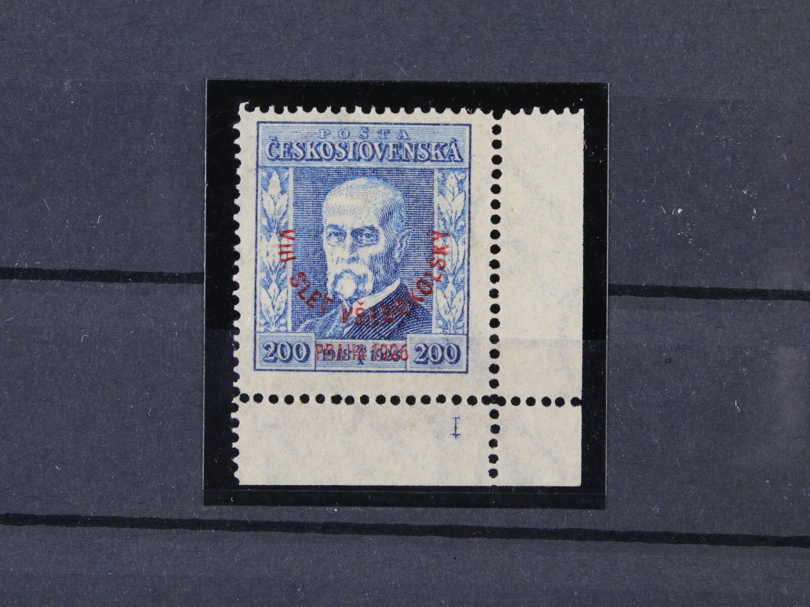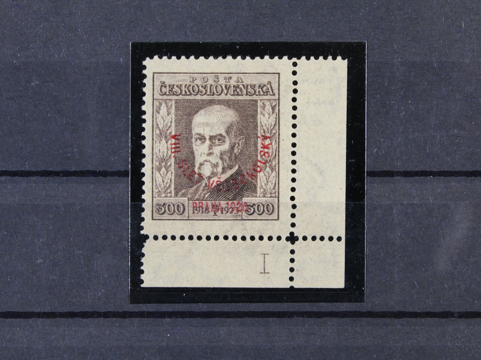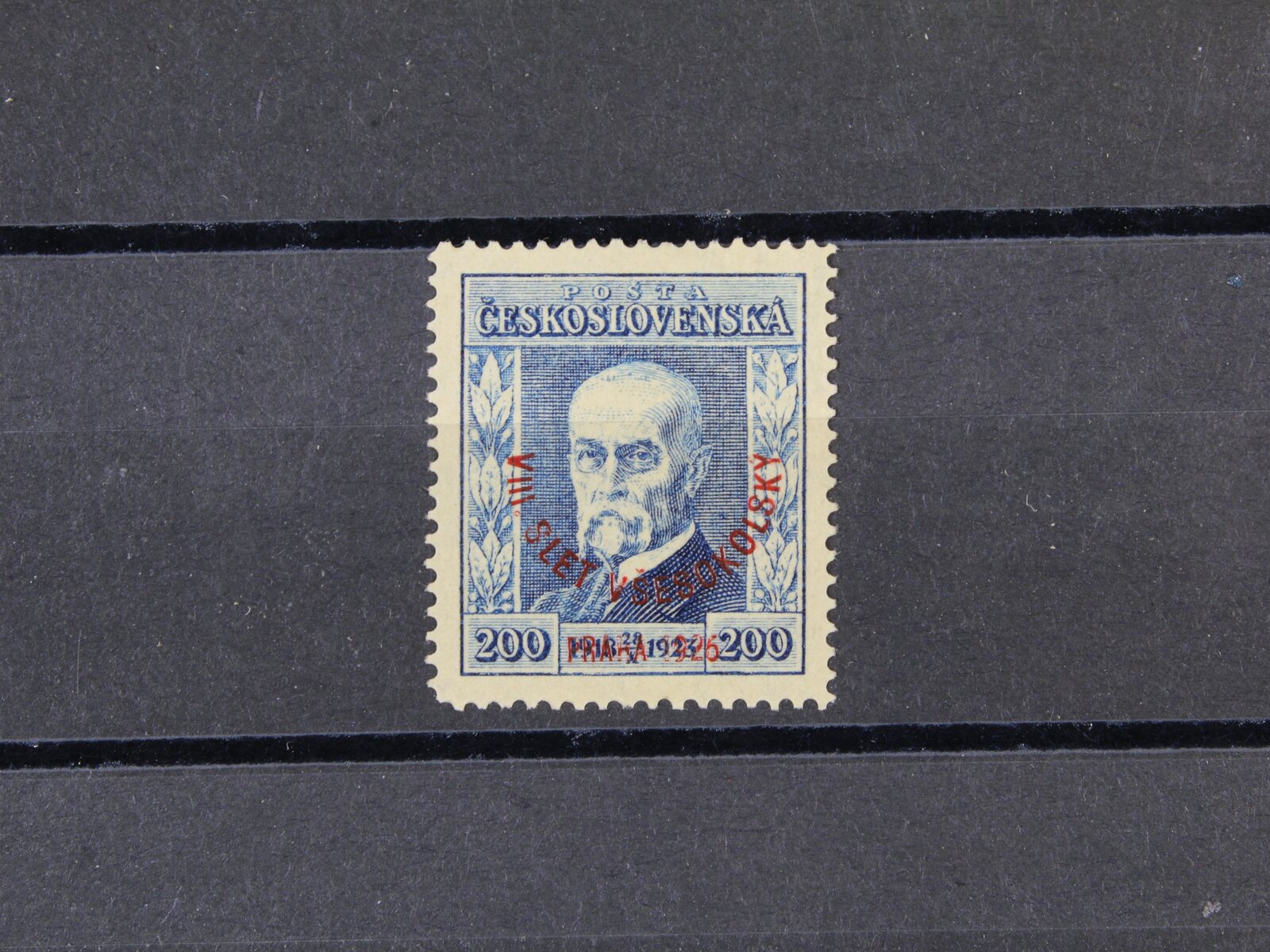 484 zn. č. 184 100h s falešným přetiskem VIII. VŠESOKOLSKÝ SLET PRAHA 1926, na zadní str. označeno FALSUM, ojedinělý vzácný výskyt 9000