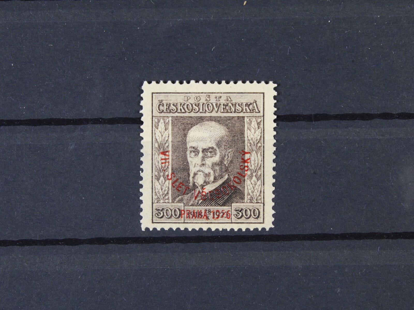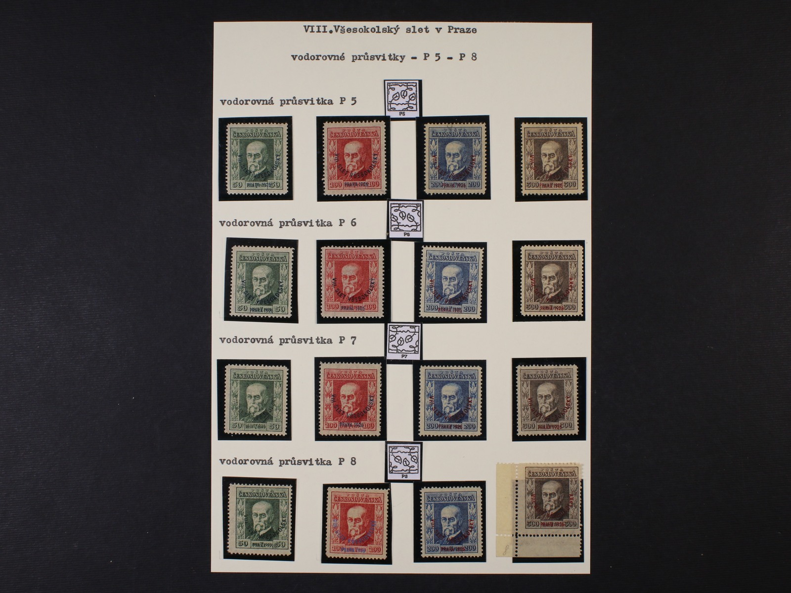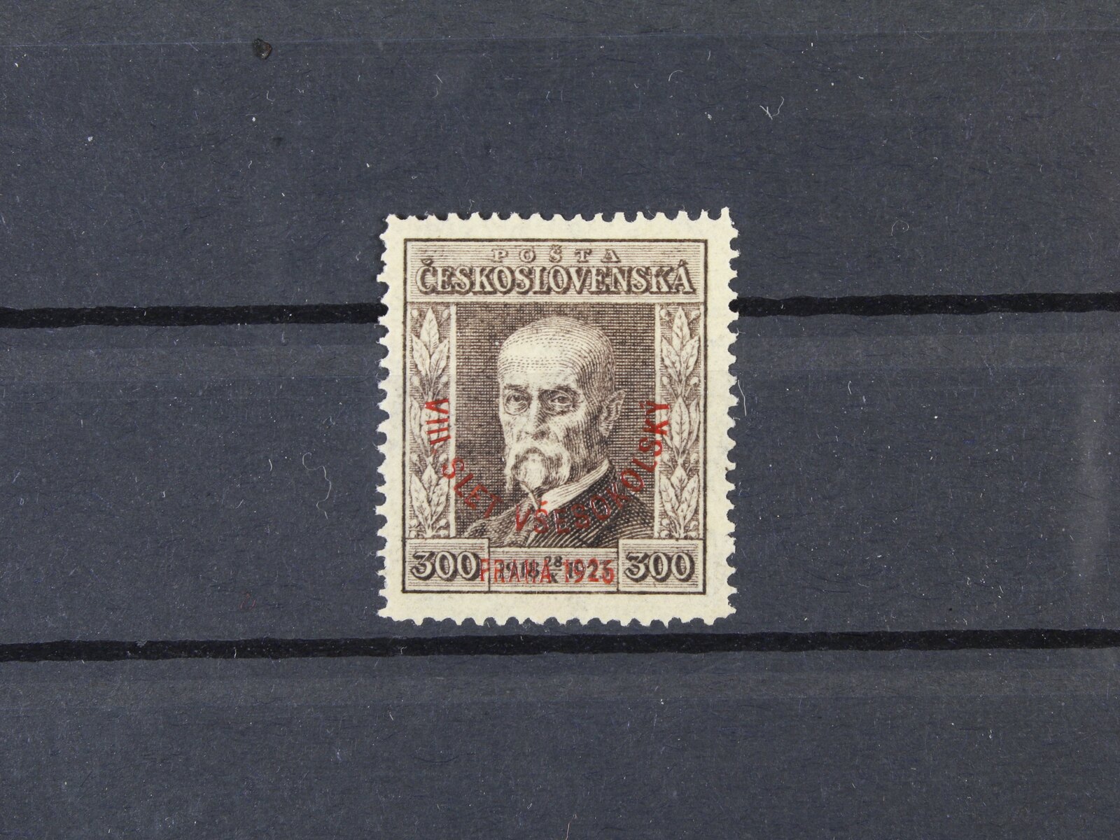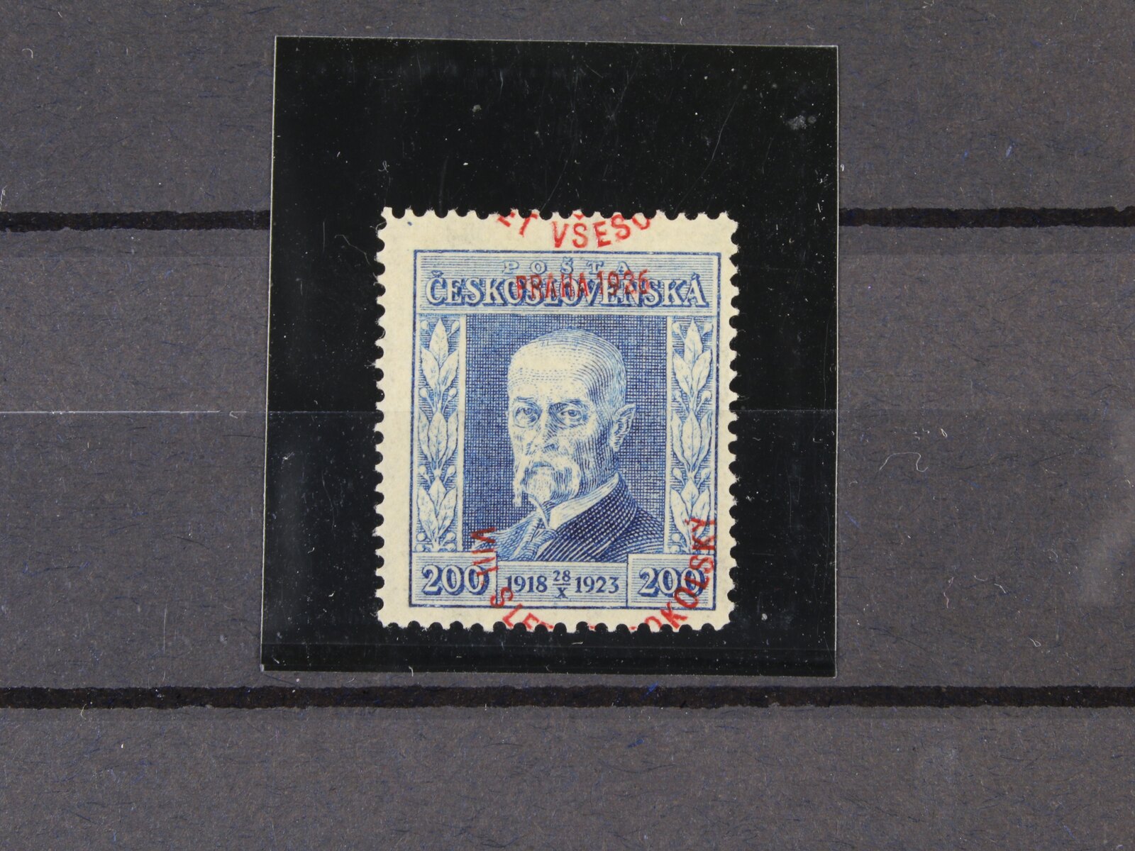 484 zn. č. 184 100h s falešným přetiskem VIII. VŠESOKOLSKÝ SLET PRAHA 1926, na zadní str. označeno FALSUM, ojedinělý vzácný výskyt 9000