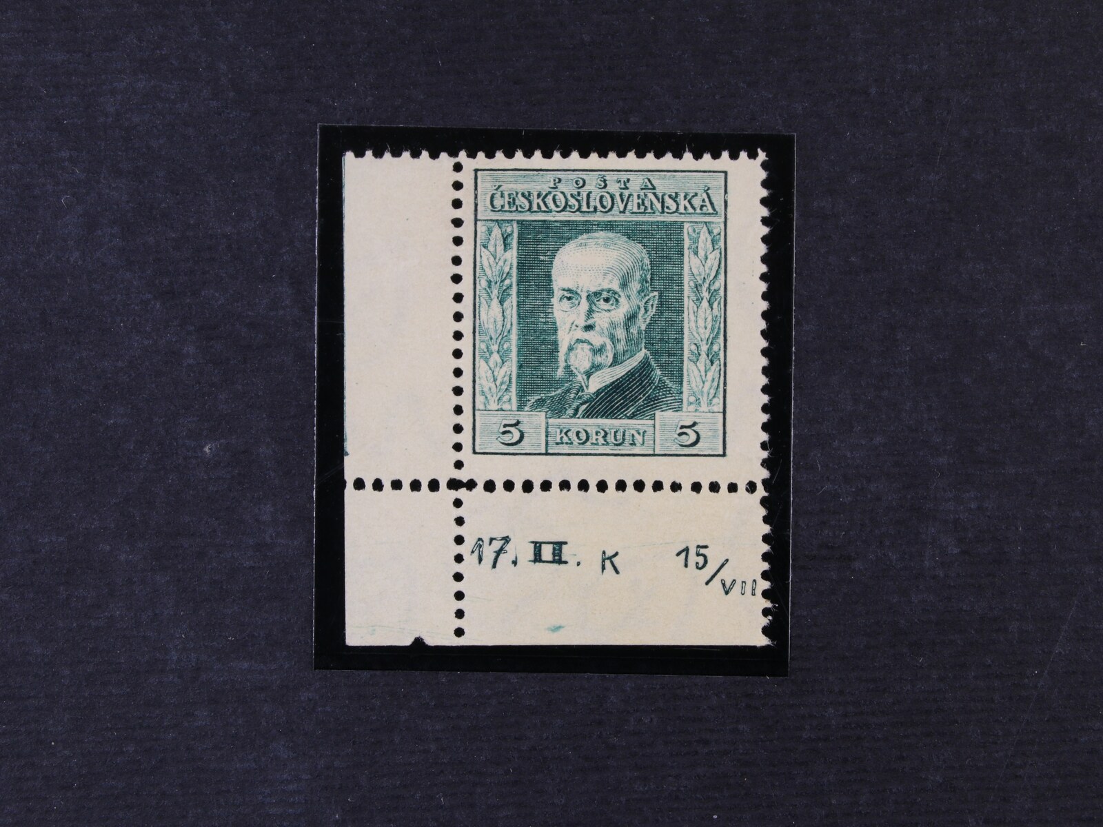 523 zn. č. 192 B, typ I, pr. 5, levý spodní roh. kus s DZ 14.I., lehká stopa po nál., zk. Gilbert 1200