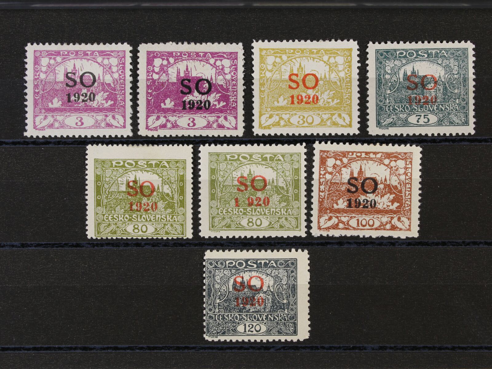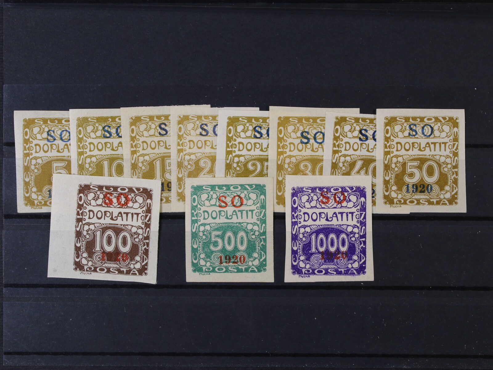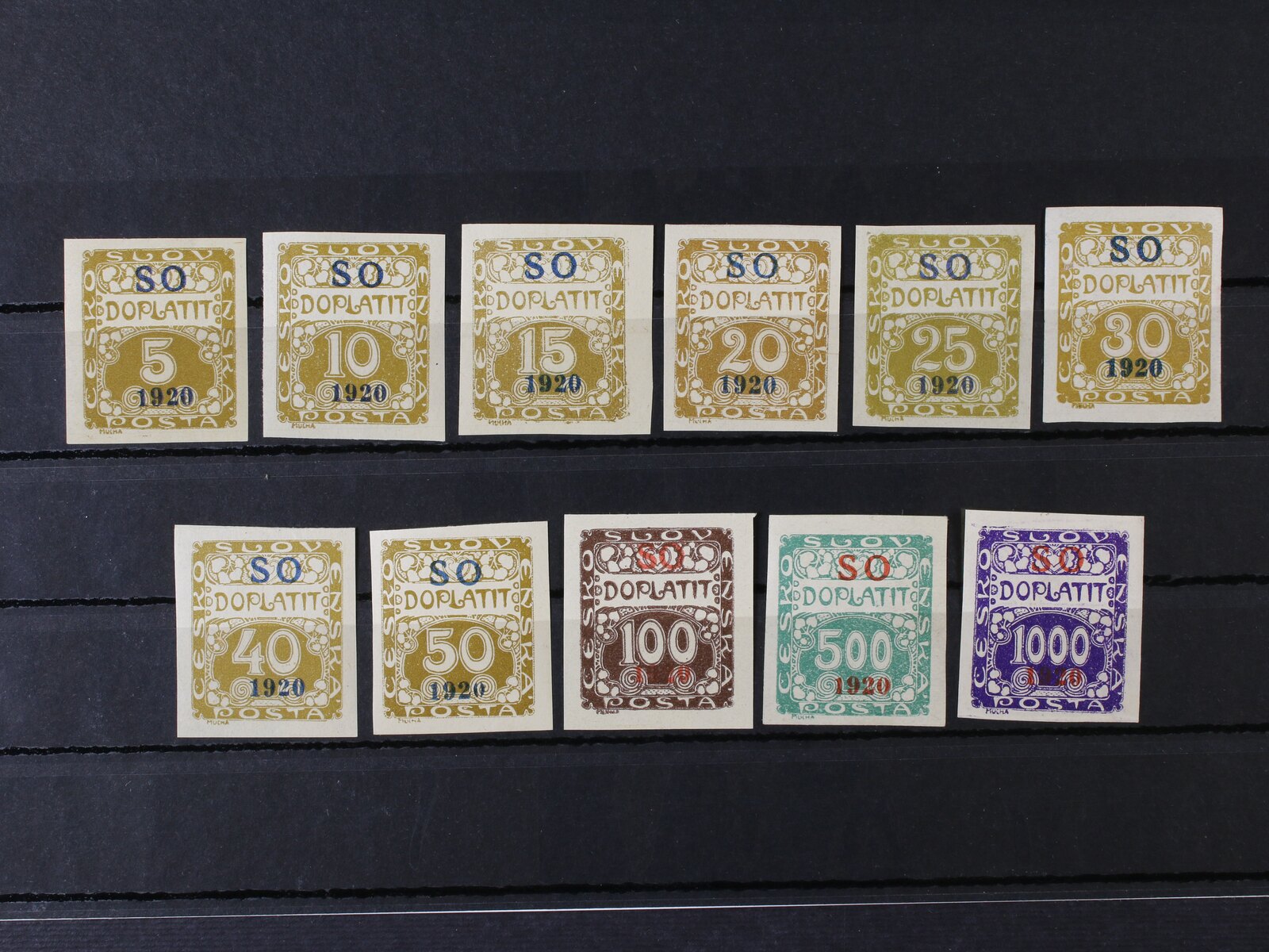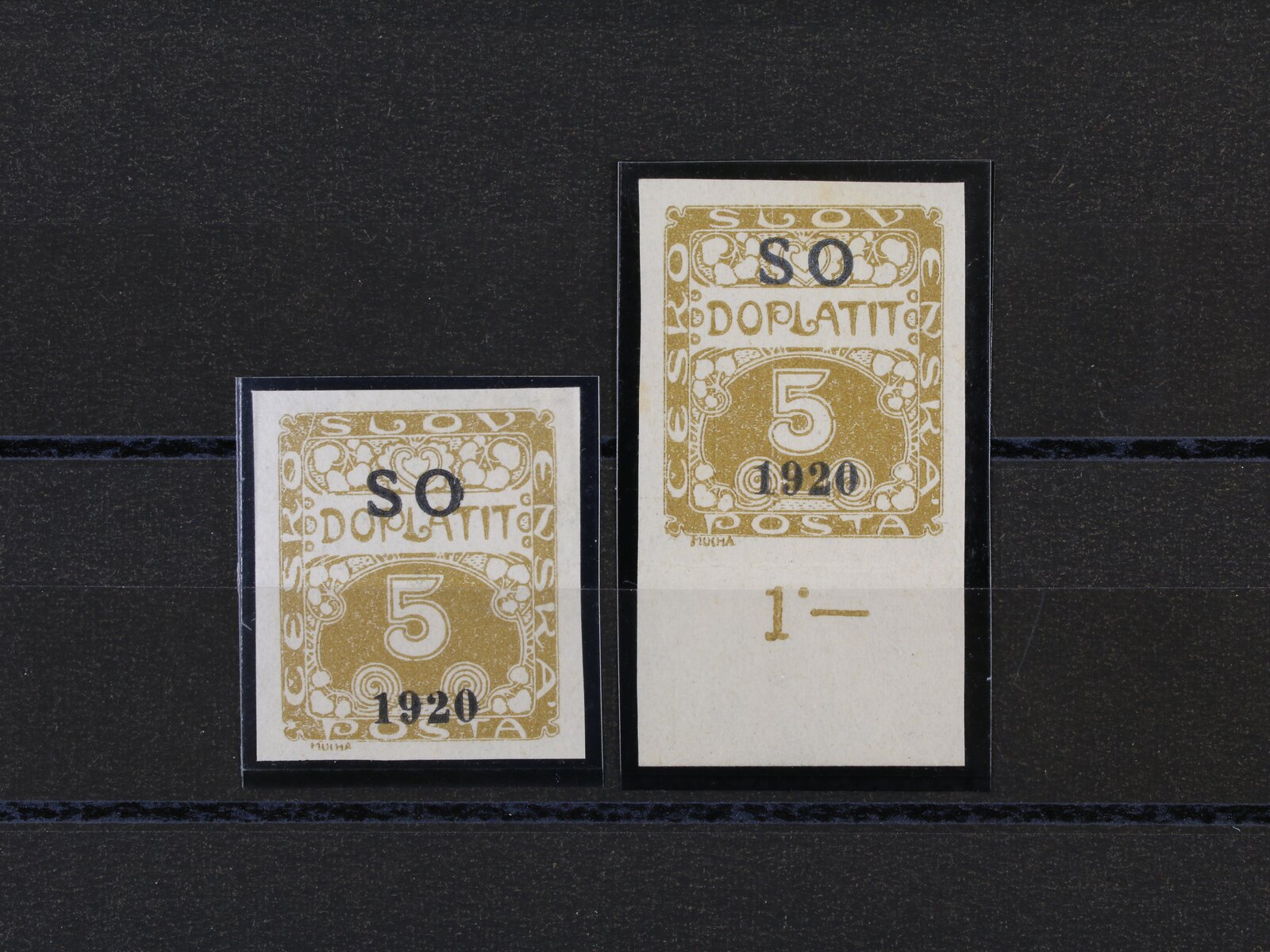 803 zn. SO č. 33a, černý přetisk, zk. Vrba, zn. SO 33 se spodním okrajem s počitadlem a modročerným přetiskem, zk. Gilbert 3200