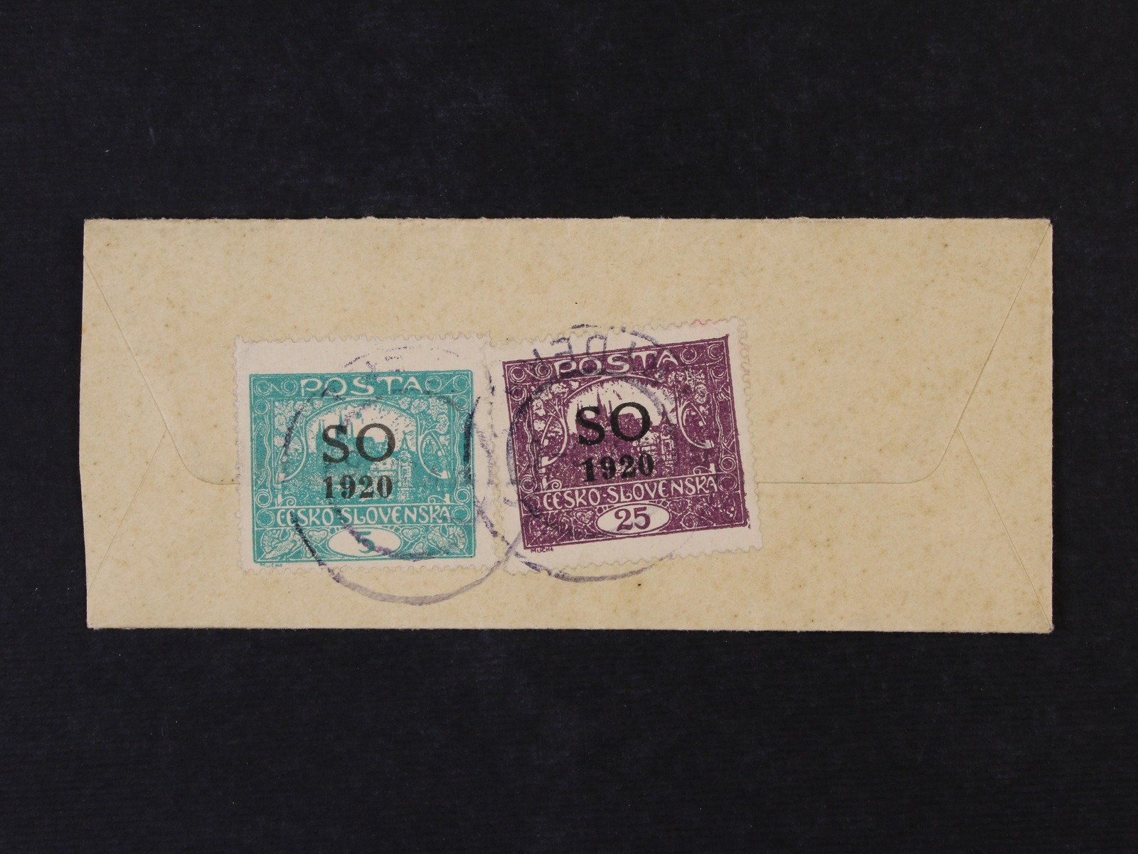 806 obálka malého formátu do Místku frank. zn. SO č. 3 A + SO 8 A, pod. raz. FRÝDEK 10.5.20 400