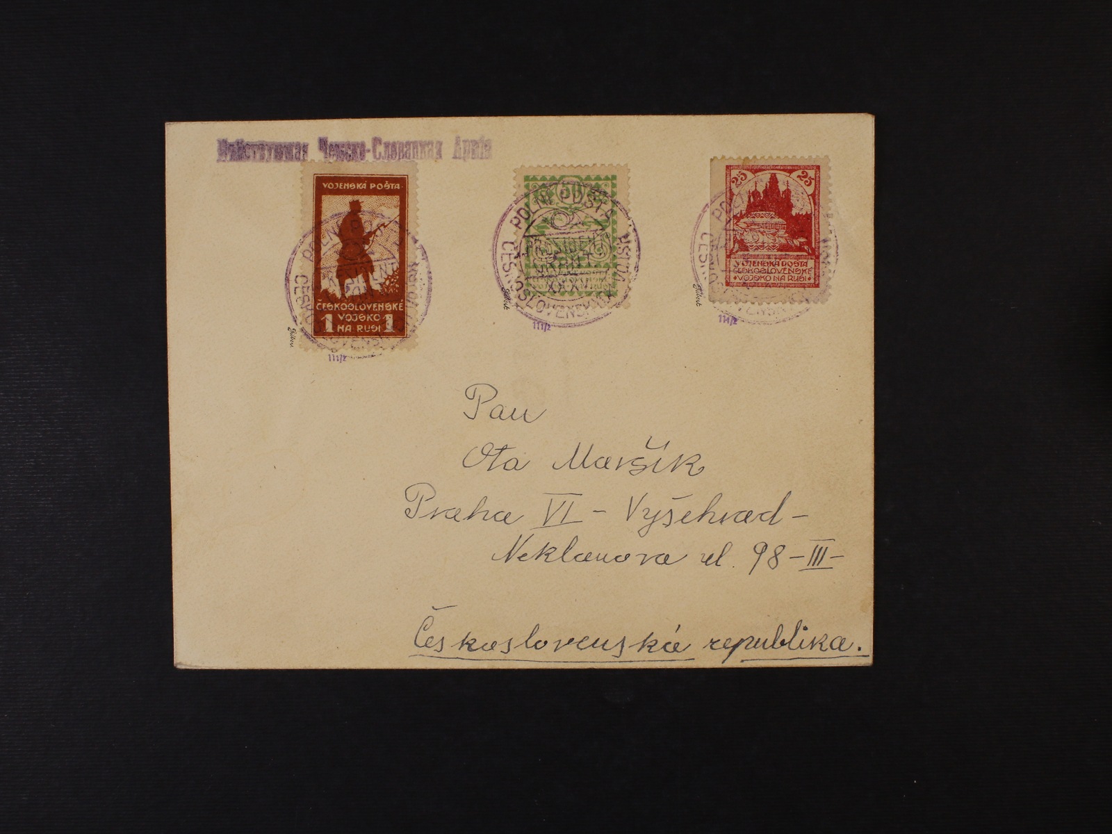 814 dopis frank. zn. PP č. 2 A - PP 4 A s pod. raz. POLNÍ POŠTA ČESKOSLOVENSKÝCH VOJSK PRESIDENT GRANT + ruční řádkové raz. v azbuce ..... Česko-Slovackaja Armija, zk. Gilbert 800