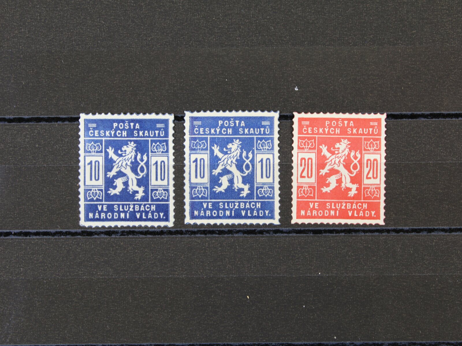 824 zn. SK č. 1 2x bar. odstíny, zn. SK 2 červená, zn. SK 2a světlečervená, zk. Gilbert, Karásek, Pittermann 1600