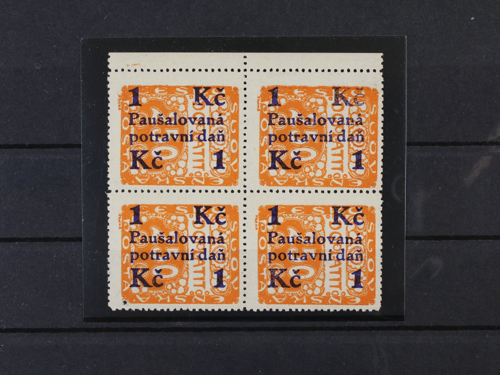 833 Potravní daň - zn. PD č. 3 ve čtyřbloku s okrajem, na levé zn. v horním okraji nepatrná stopa po nál., ve spodní zn. vypadené dřívko, zk. Vrba 1400