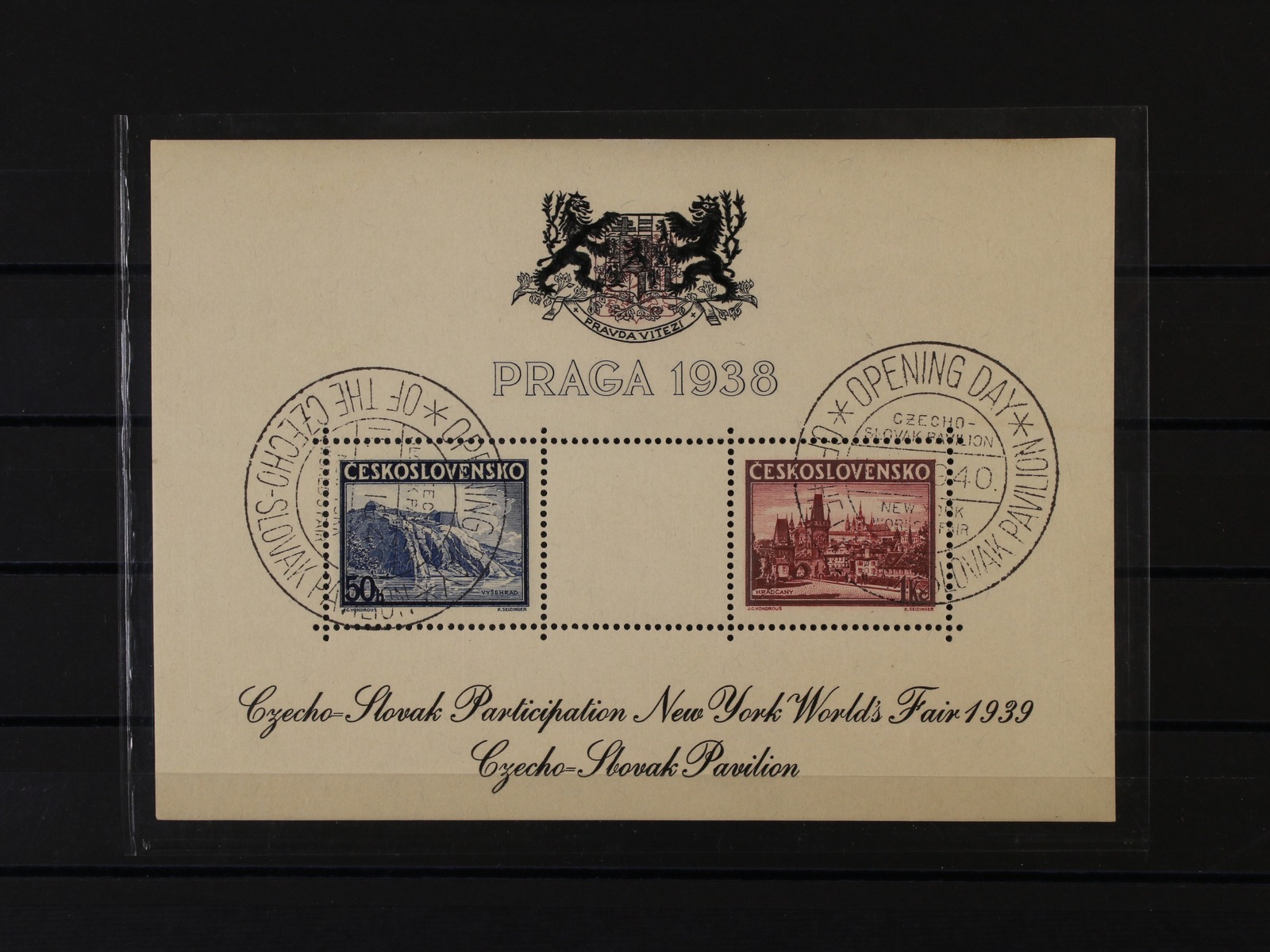 838 A NV č. 19 s černým přetiskem k výstavě New York 1939, mírně zvlněný papír + původní destičky 900