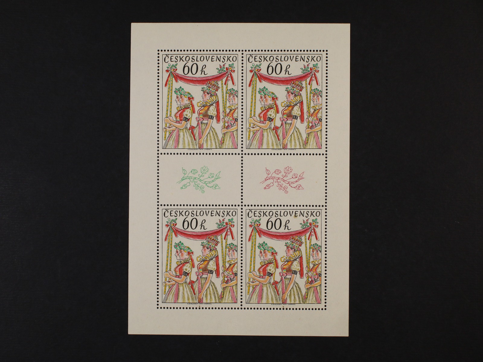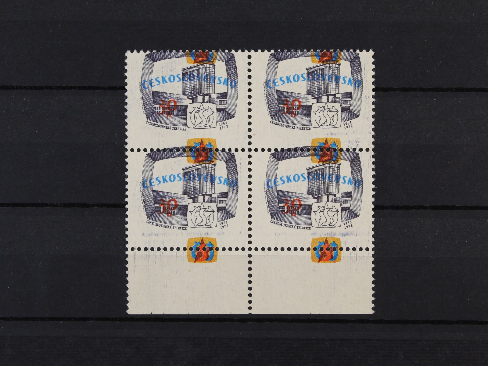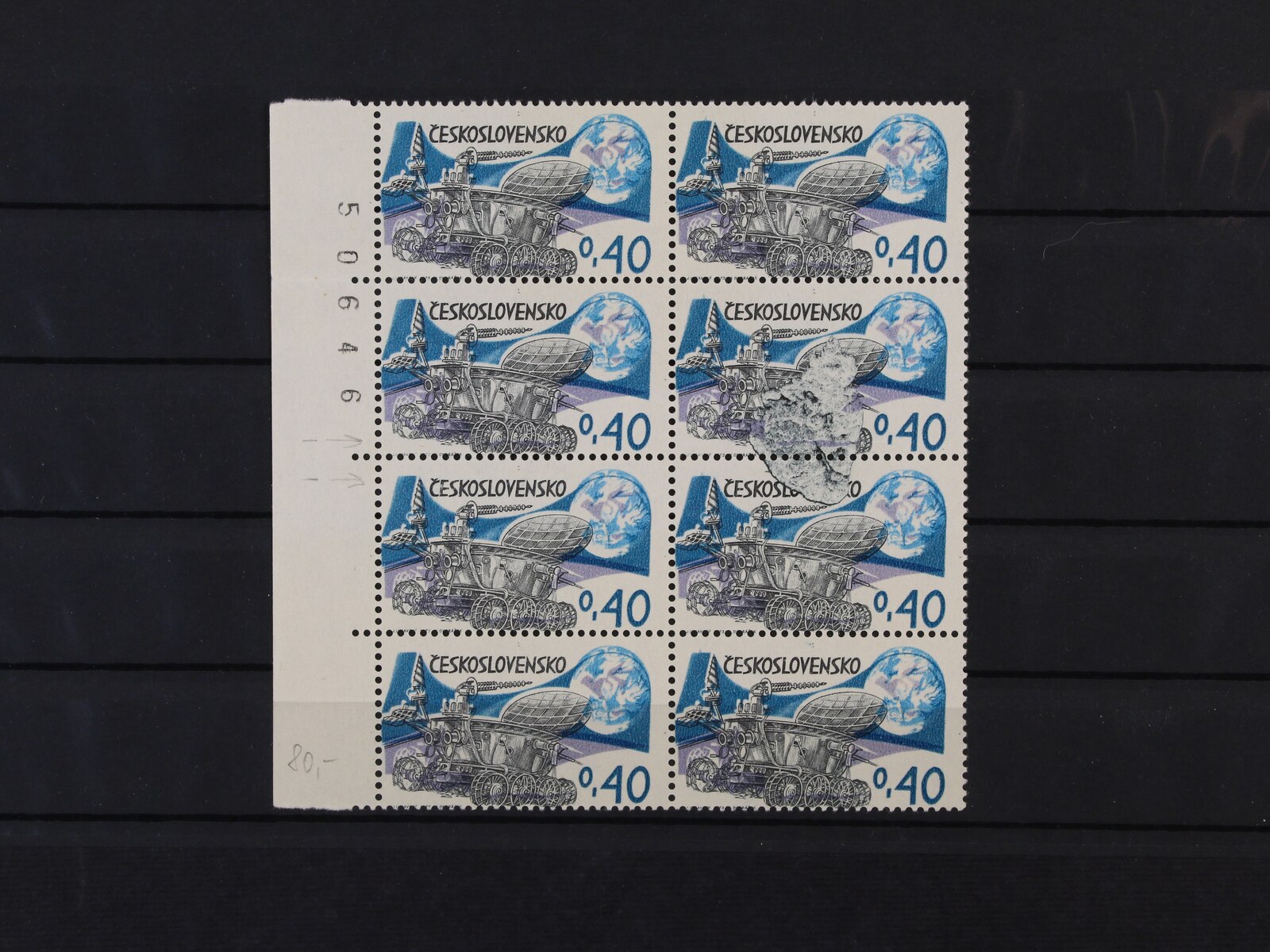 1218 zn. č. 2339 ve čtyřbloku, makulaturní tisk s posuny barev a perforace 600