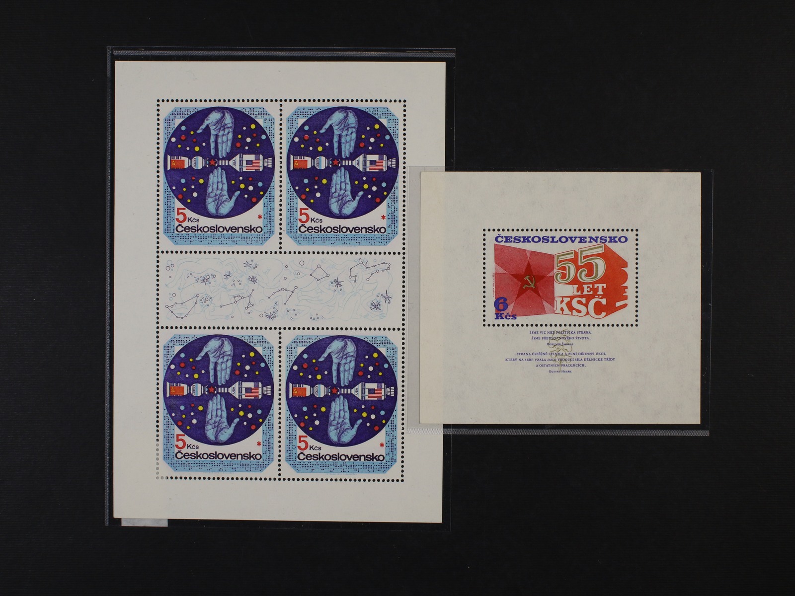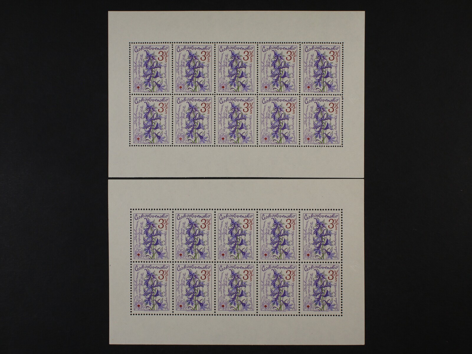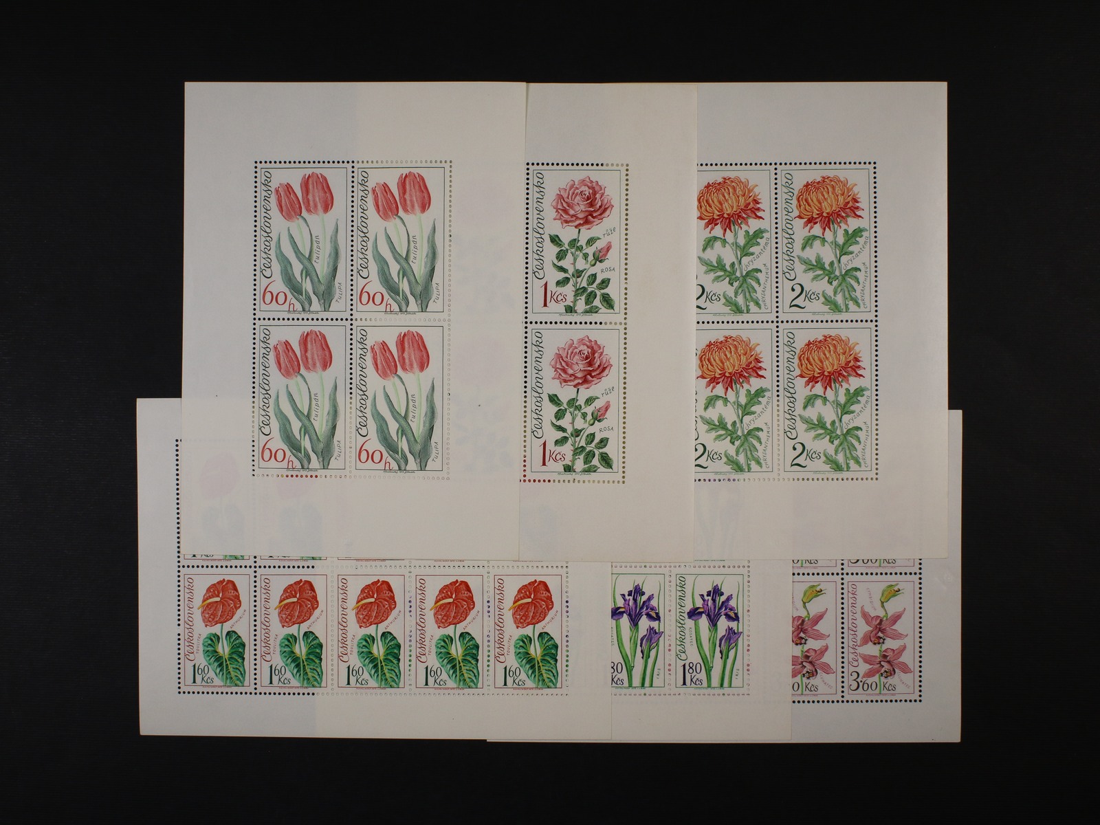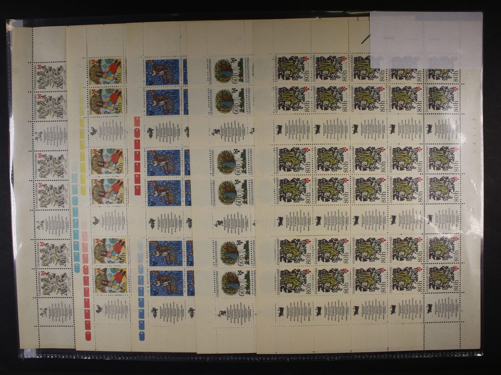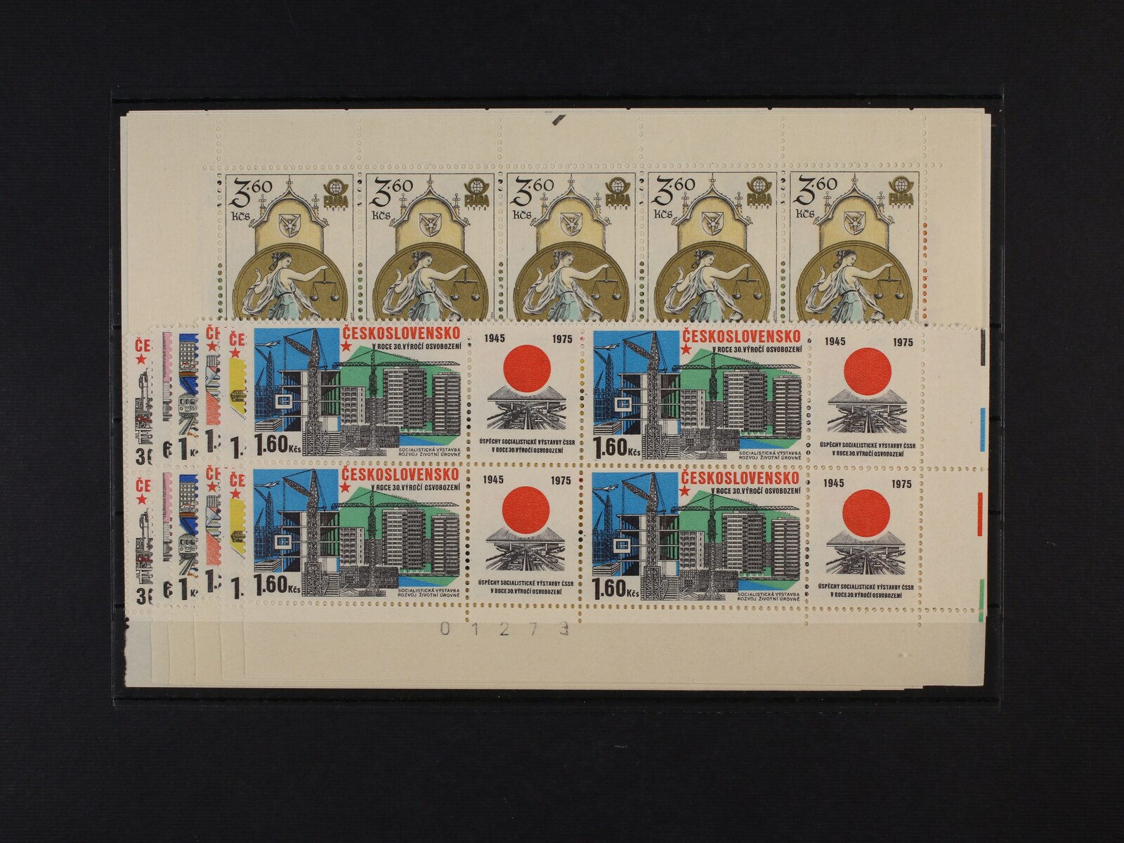 1211 zn. č. 2167 - 72 - pravé dolní rohové čtyřbloky se spojkami a kuponem, zn. č. 2322 - 26 horní 10ti-bloky s okraji 500