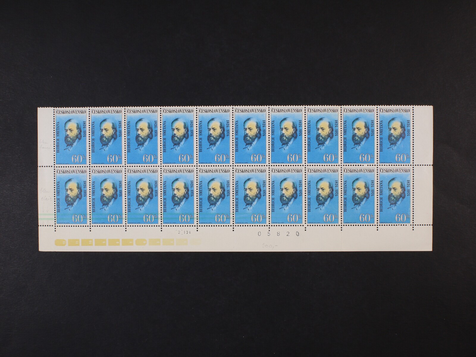 1204 zn. č. 2062 spodní 20ti pás s VV - dvojitá vodorovná čára modrozelené barvy přes spodní známky 300