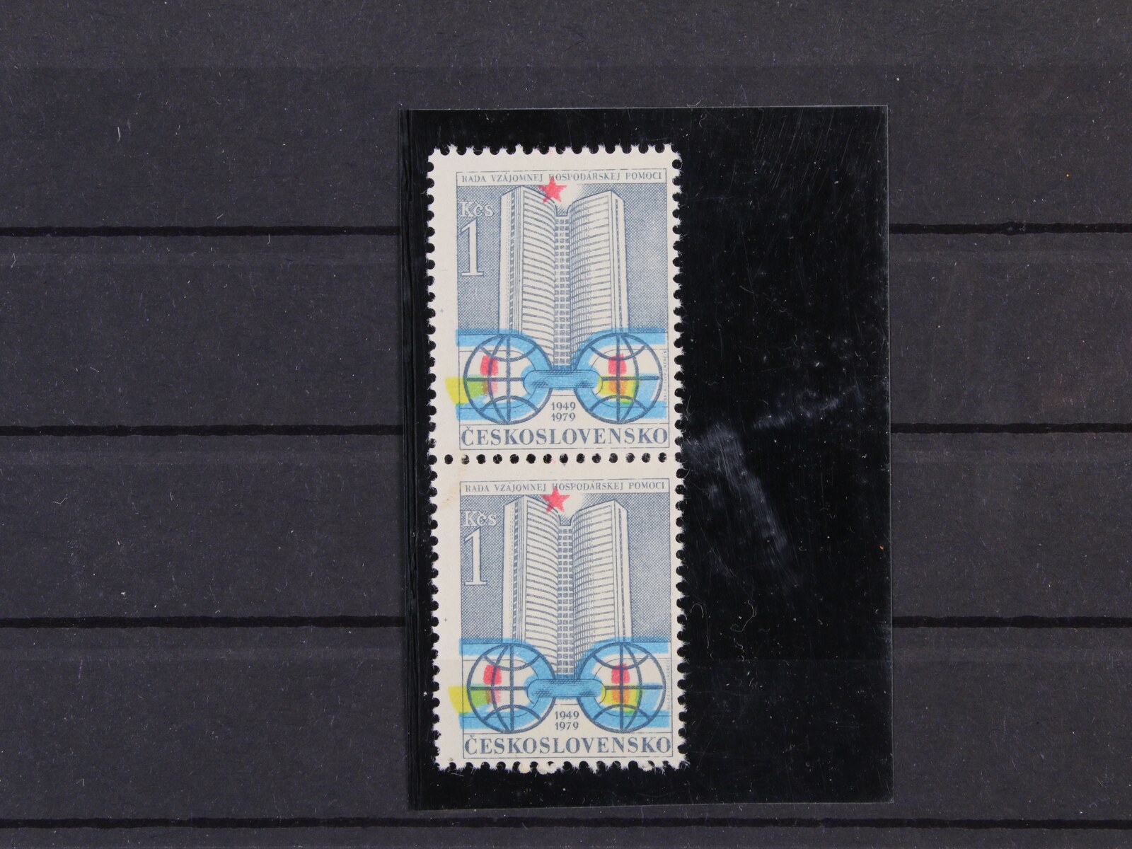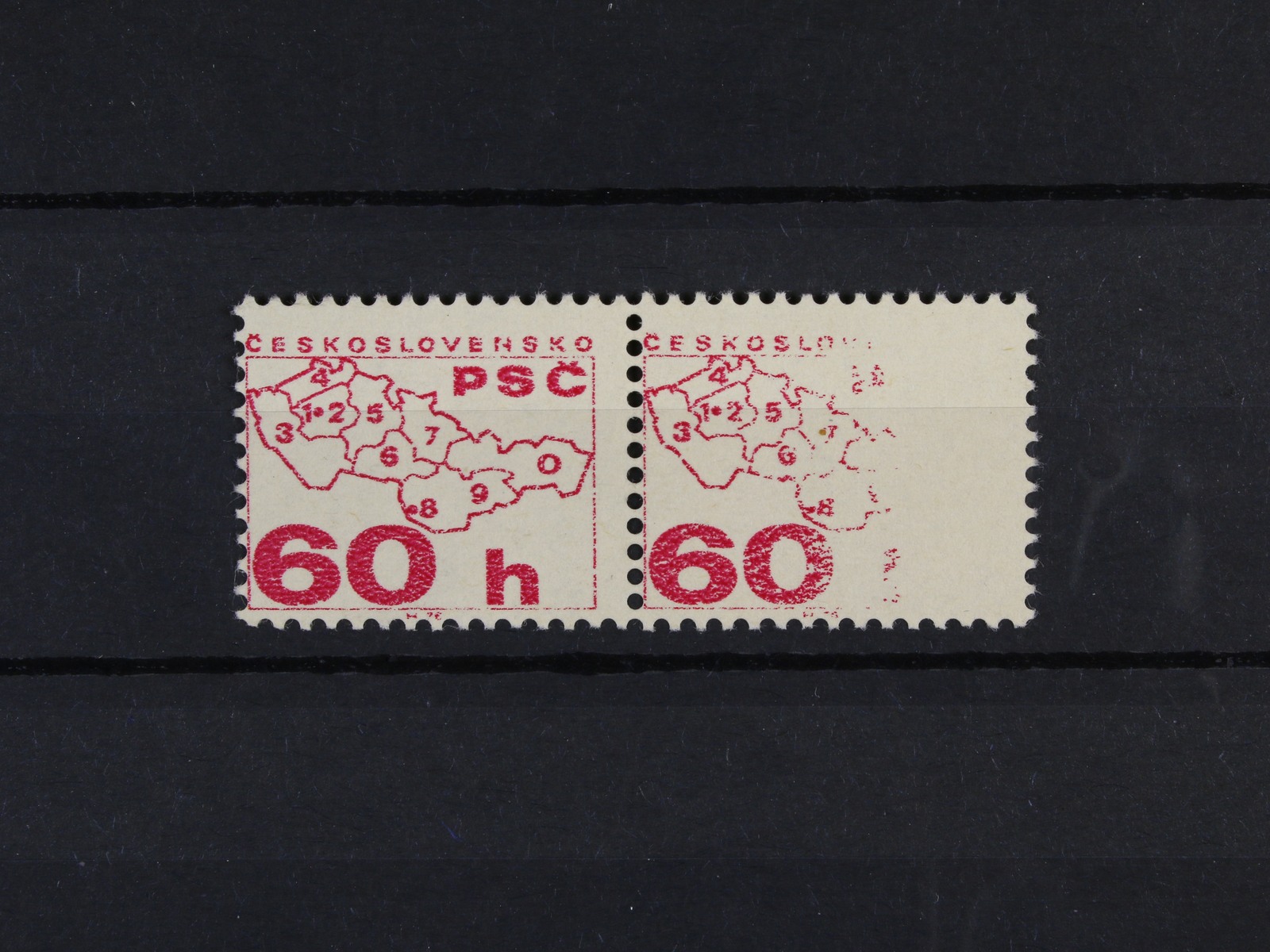 1214 zn. č. 2217 ve dvoupásce s VV - výrazný nedotisk na pravé známce 3000