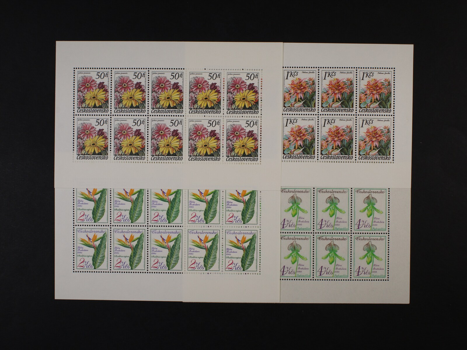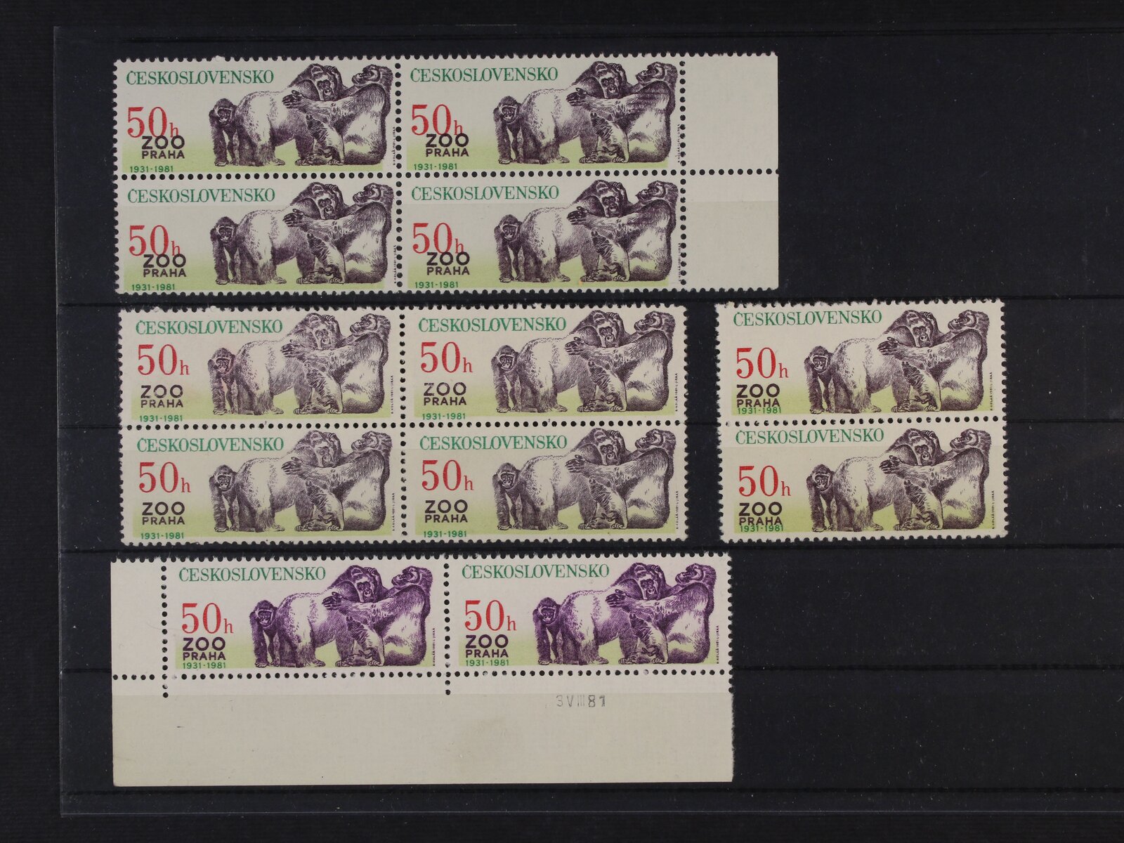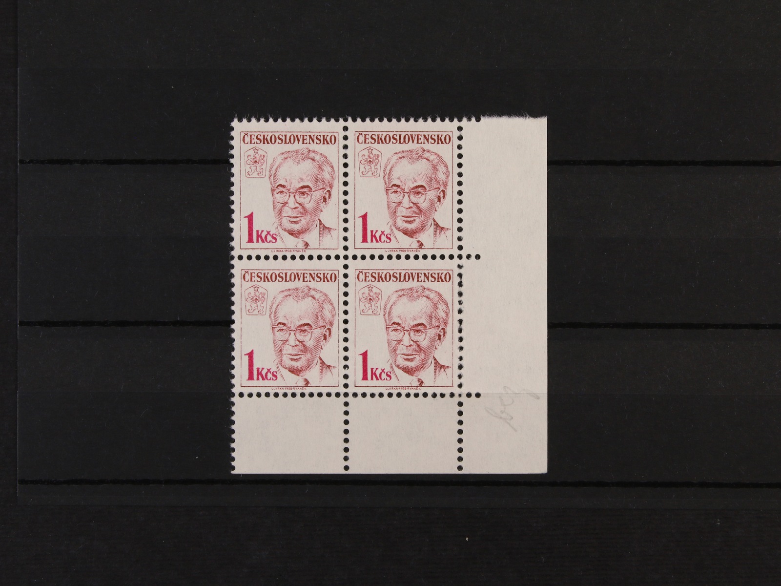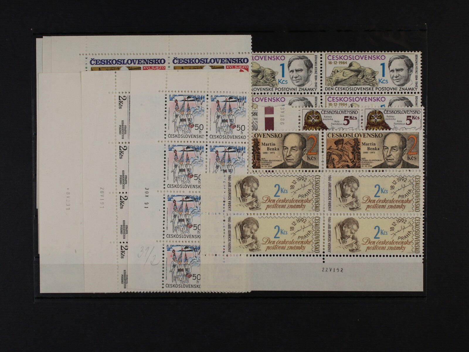 1230 zn. č. 2608 - 10, 2679, 2758 - 62, 2986 (2x 8mi-blok ORZ), 2999, 3000, vše rohové čtyřbloky s datem tisku, DV ... 500