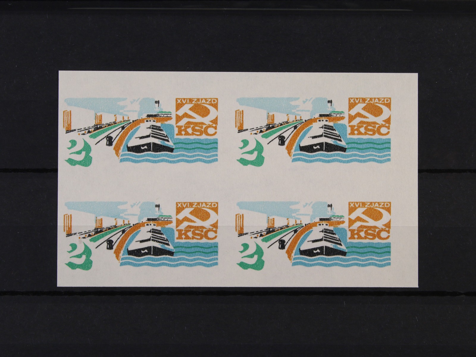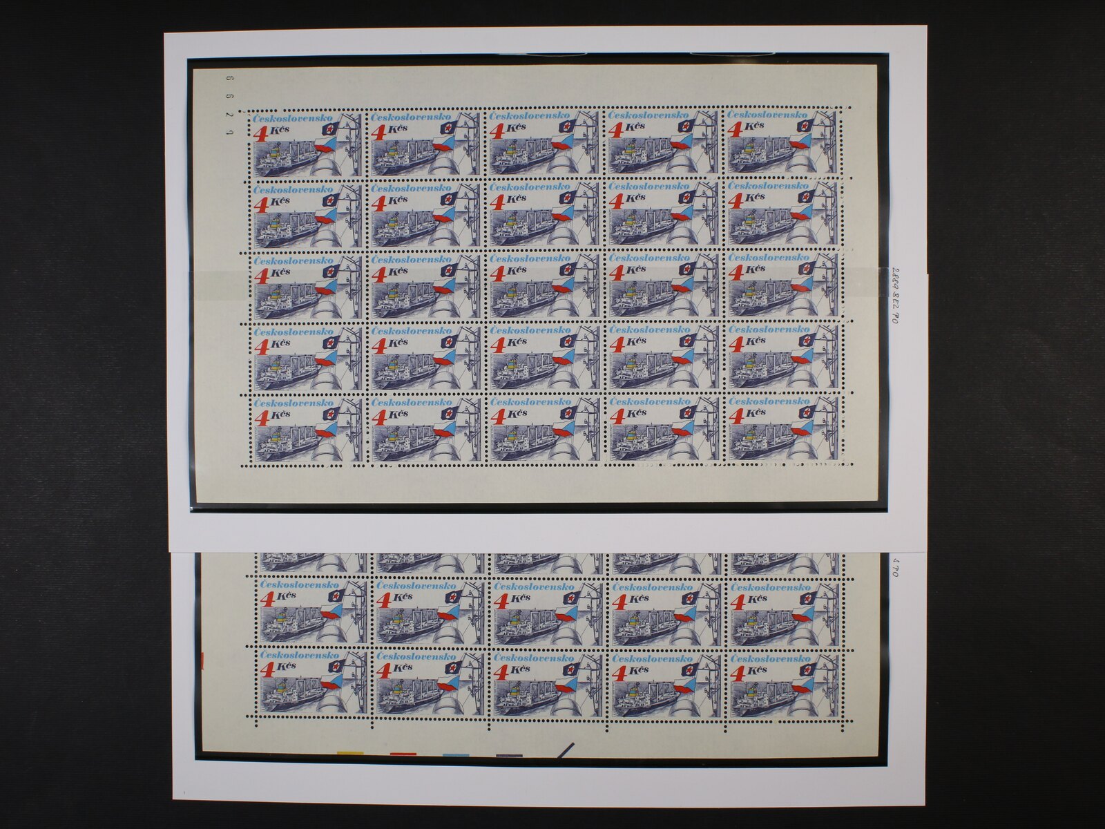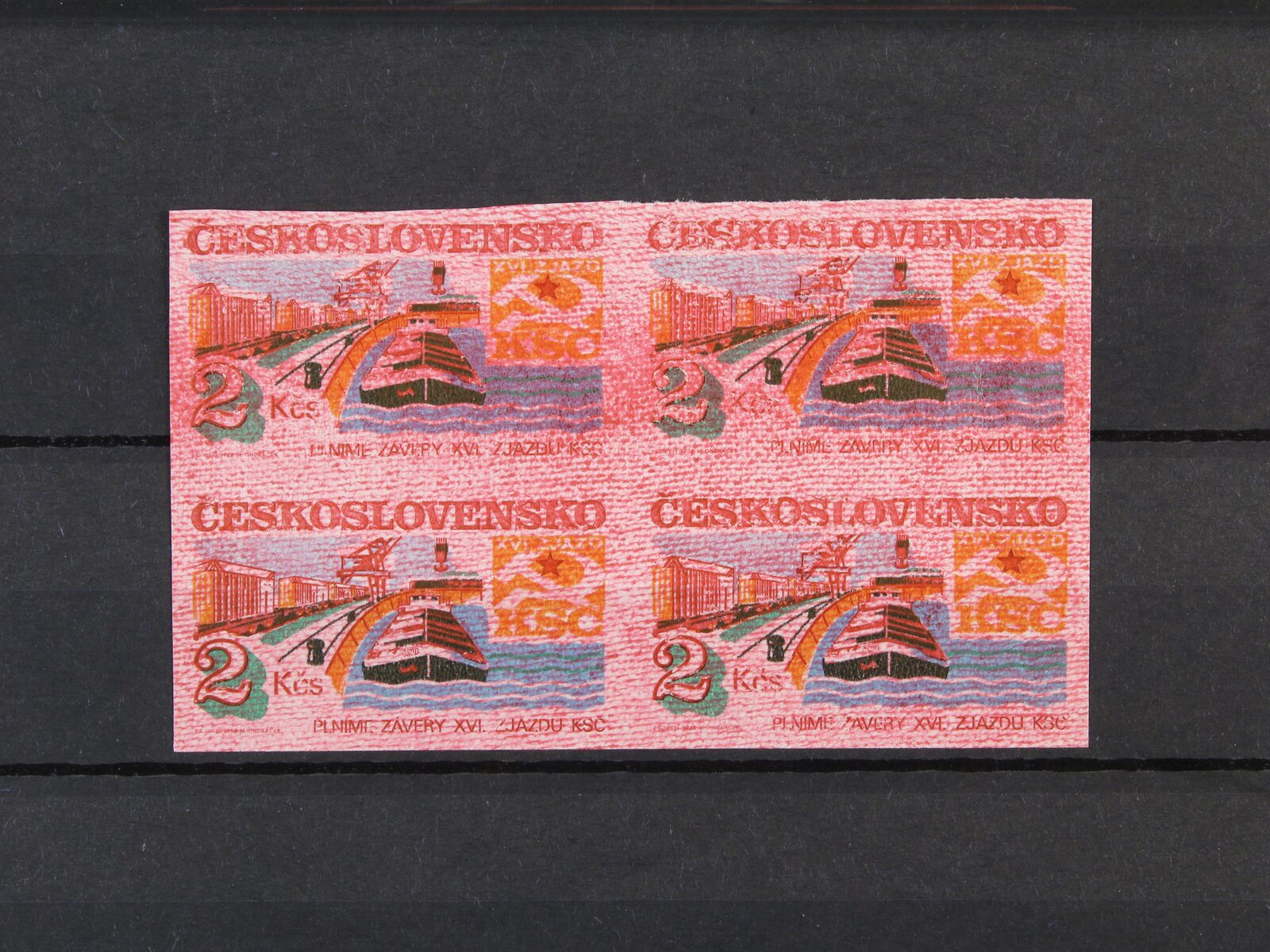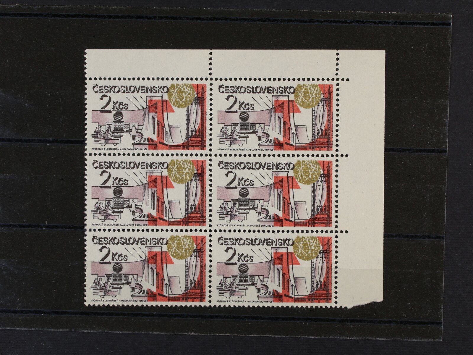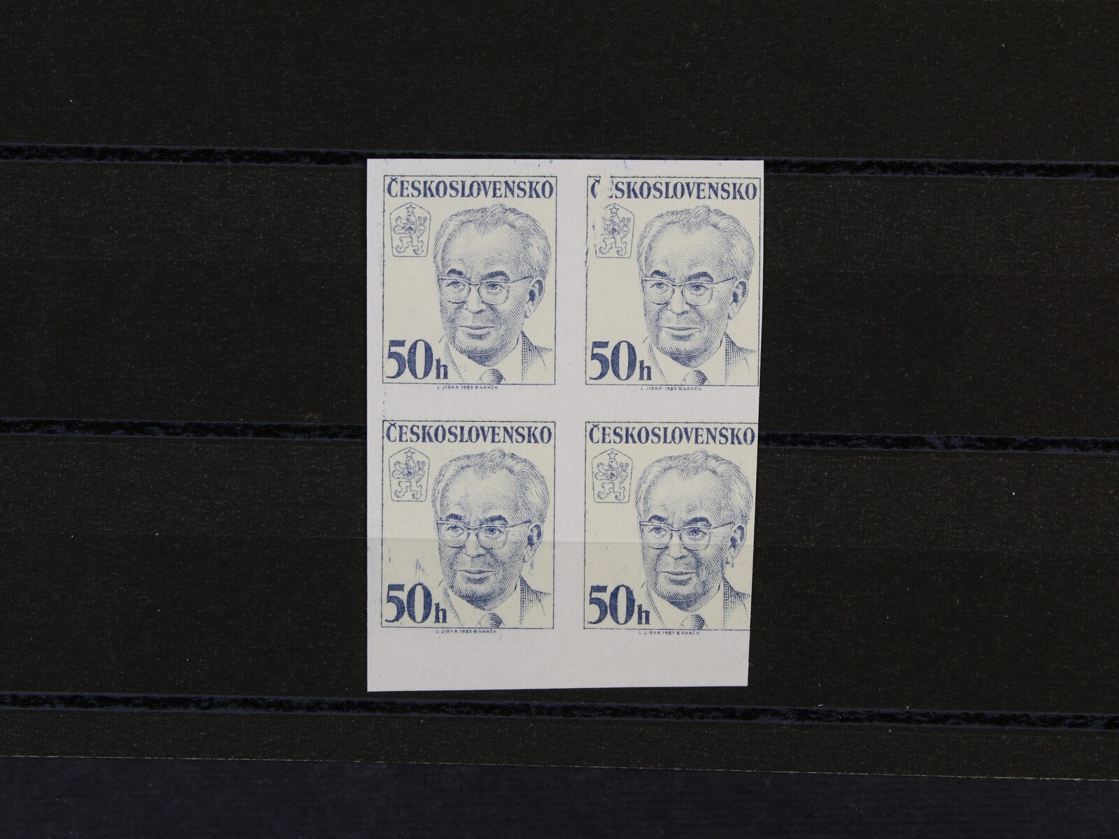 1227 zn. č. 2574 N - nezoubkovaná, ve čtyřbloku, uzký pravý střih, navíc menší VV nedotisk na pravé horní známce způsobené vpadnutím smítka při tisku 6000