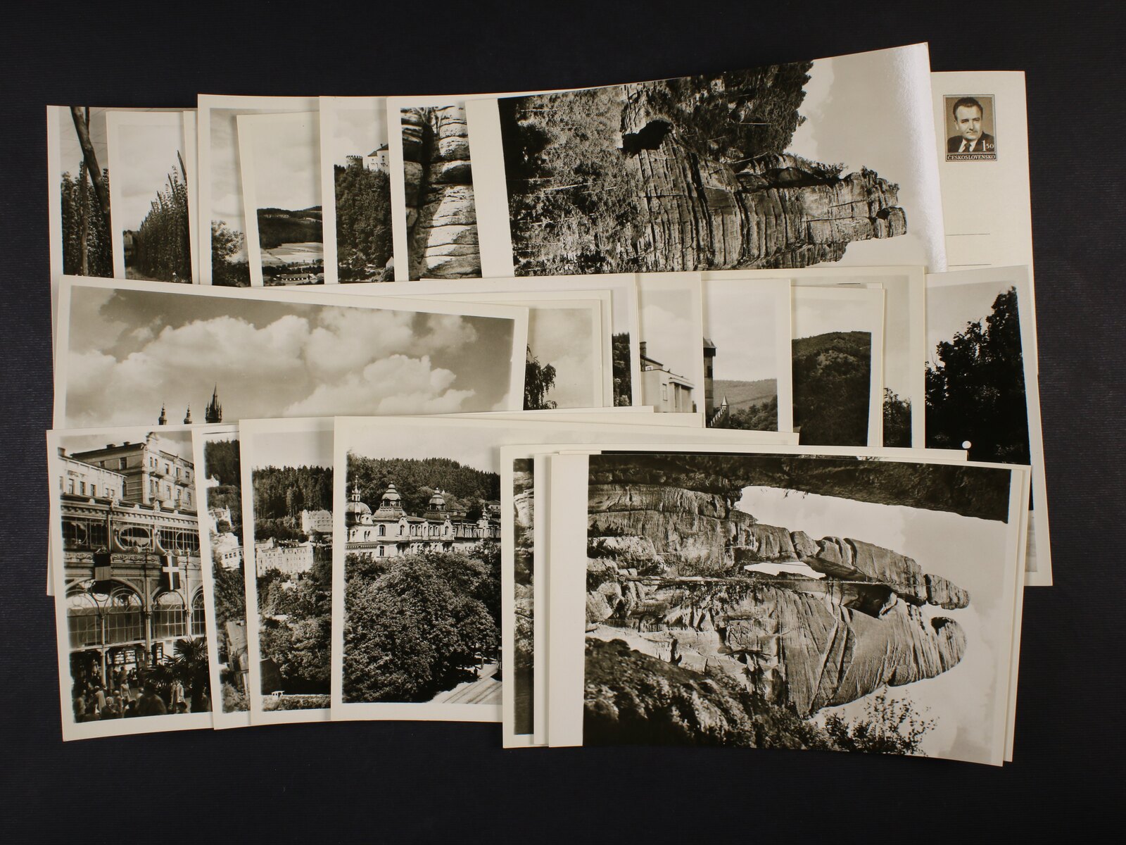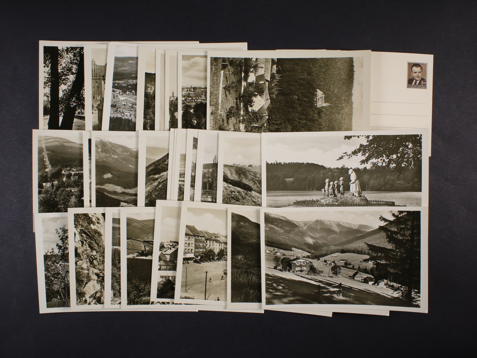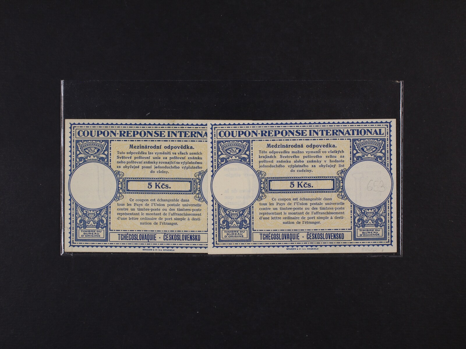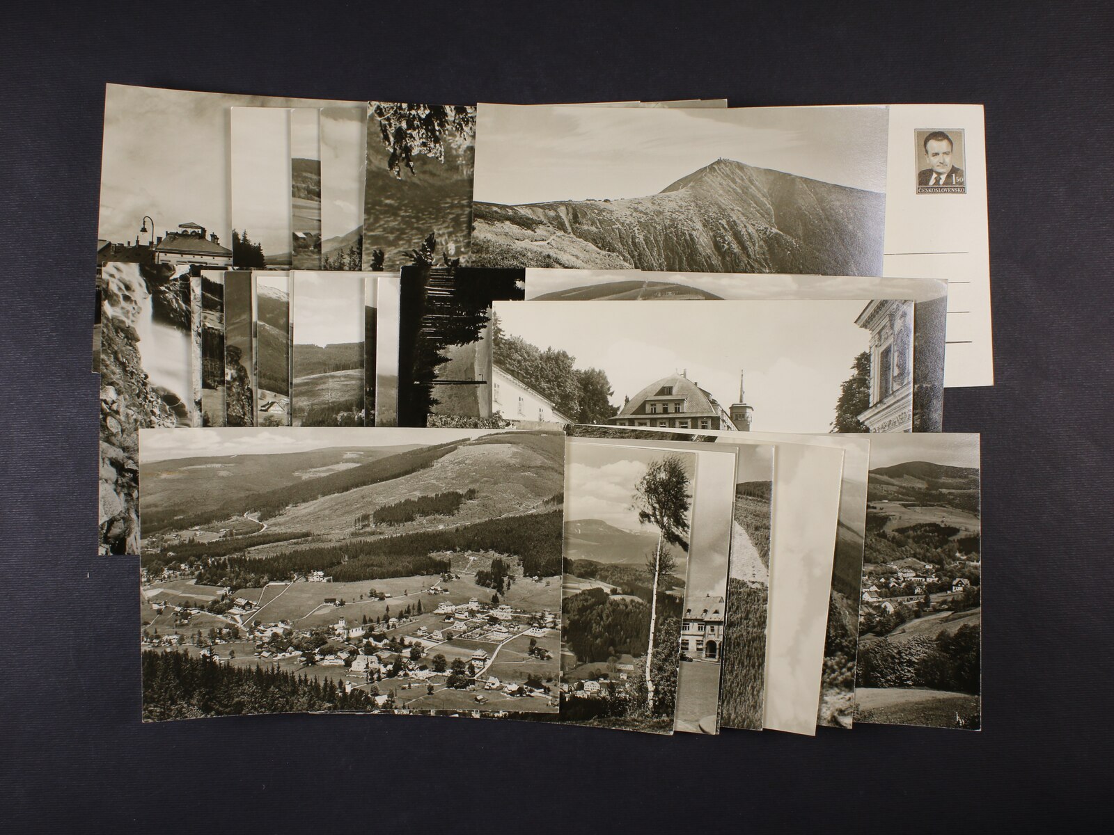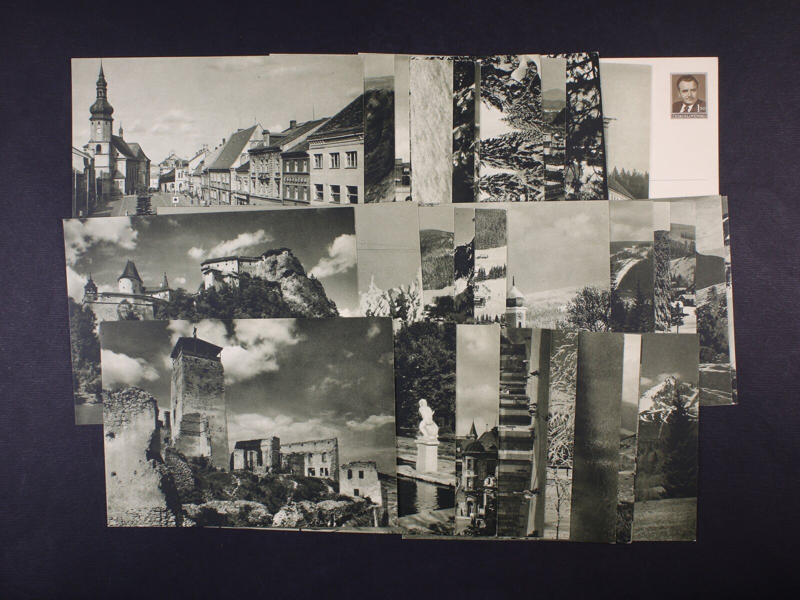 sestava 3 ks nepoužitých poštovních průvodek Slovenského štátu s natištěnými kolky 50h a 1Ks s ručním přetiskem ČESKOSLOVENSKO