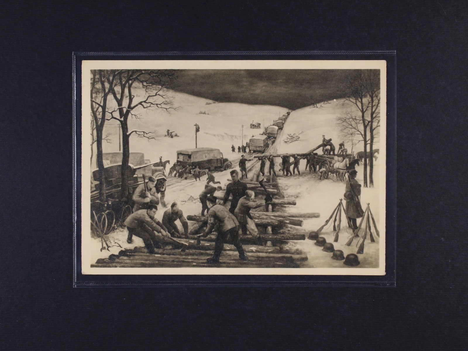 1403 jednobar. pohlednice "Unsere Arbeitsmänner im Kriegseinsatz ...", přepravena PP 1943, dobrá kvalita 200