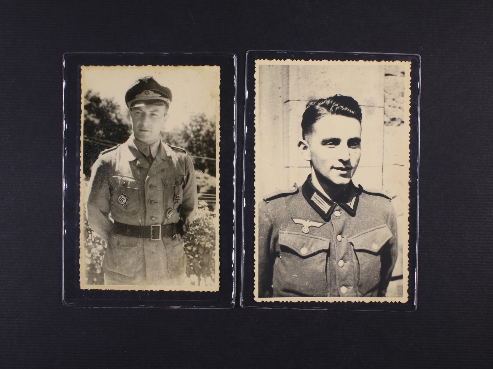 1404 dvě jednobar. fotografie něm. vojáků v uniformách, na zadní str. oválné raz. v azbuce s vepsaným číslem + řádkové raz. v azbuce 300