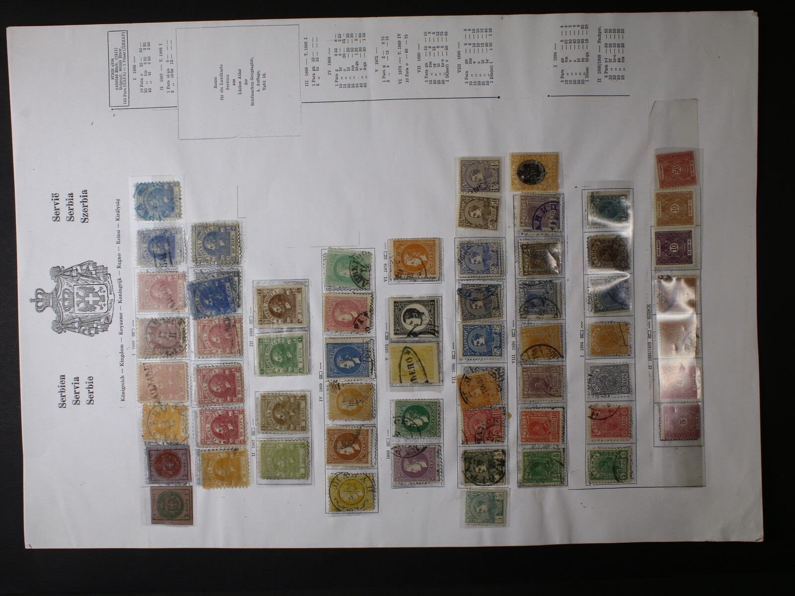 Srbsko - menší nekompl. sbírka zn. z let 1866 - 1918, mj. zn. Mi. č. 3 - 8, 9 A - B, 10 A + B, kat. cena cca 1800 EUR, uloženo na spec. předtištěných listech v Havidkách, zajímavé, k prohlédnutí