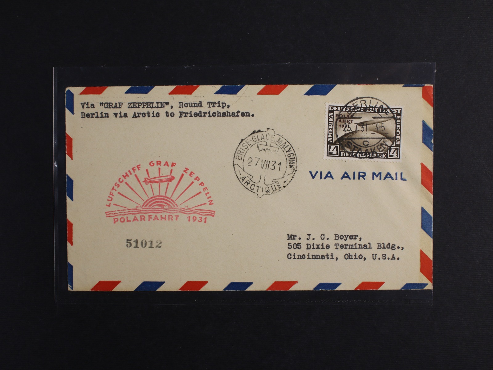 Německo - Zeppelin 1931, POLARFAHRT / Sie.119H, dopis s 4RM POLARFAHRT, raz. BERLIN, "bis Malygin"; adresováno do USA, bezvadné, kat. 1.475 EUR