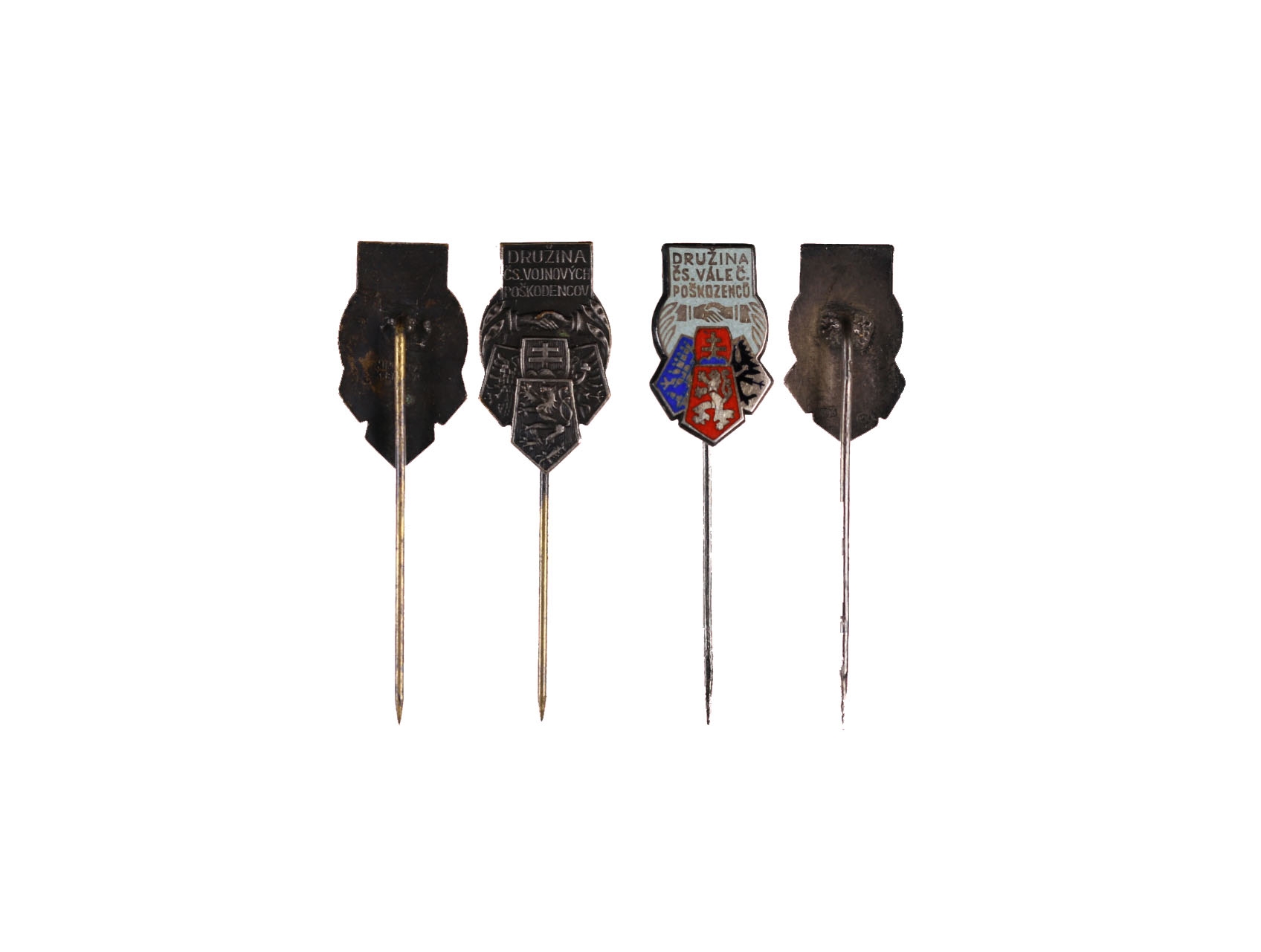 2753 2 ks. odznaků Družiny ČS. válečných poškozenců, 1x stříbro smalty, výrobce Karnet Kyselý, 1x postříbřený bronsz, výrobce Mincovna Kremnica, upínání na svislou jehlu 500