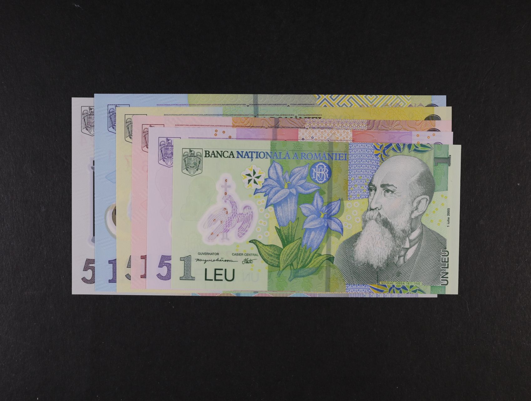 1, 5, 10, 50, 100, 500 Lei 2005 plastové, Pi. 117a, 118a, 119a, 120, 121, 123