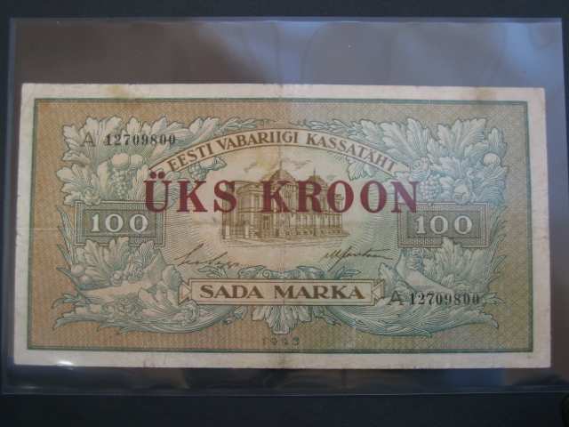 1 Kroon (1928 - přetisk na 100 Marka 1923), Pi. 61a