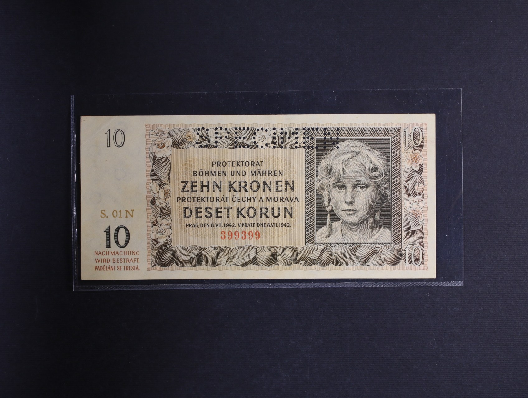• 10 K 1942 série 01 N s perf. SPECIMEN, Ba. 37 b, Pi. 8s, první série