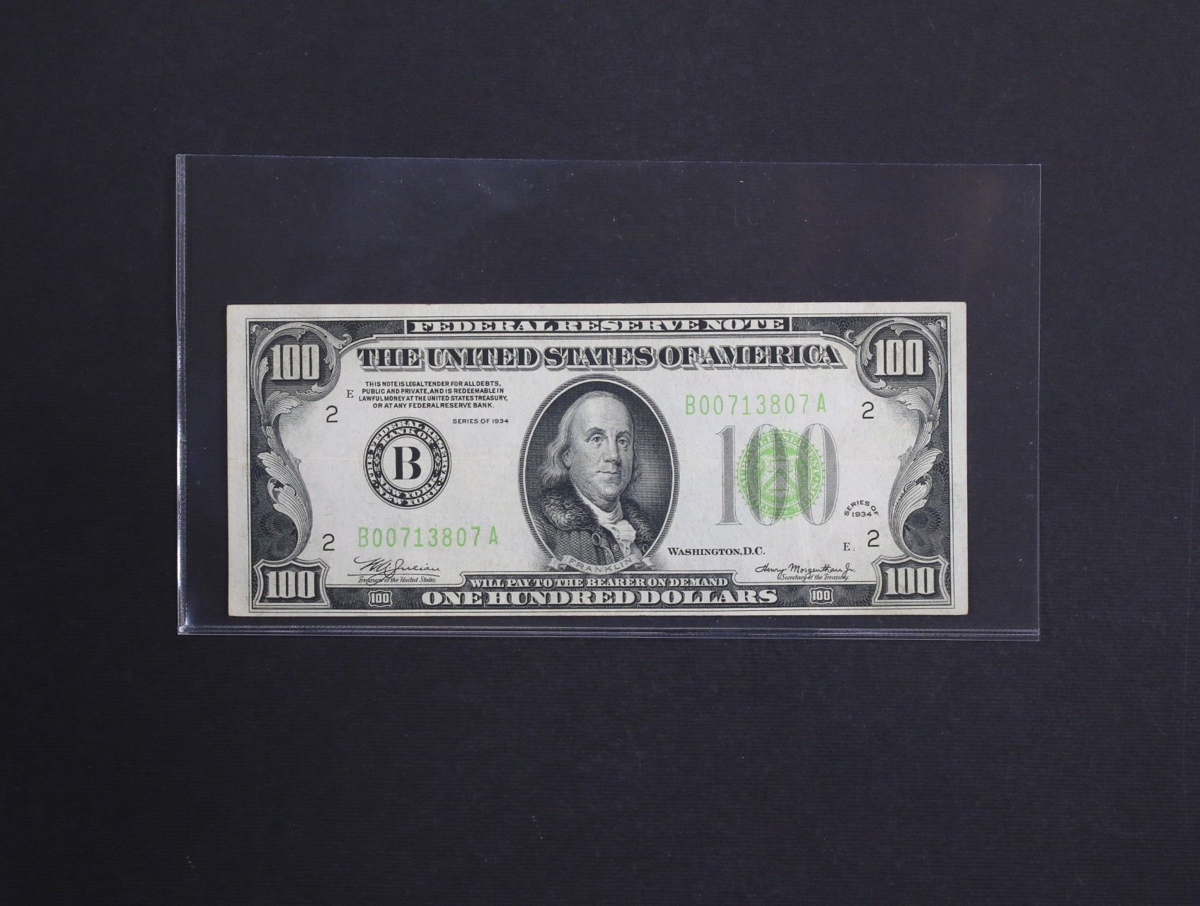 100 Dollars 1934 (B New York / New York) Federal Reserve Note, světle zelená pečeť, Pi. 433L
