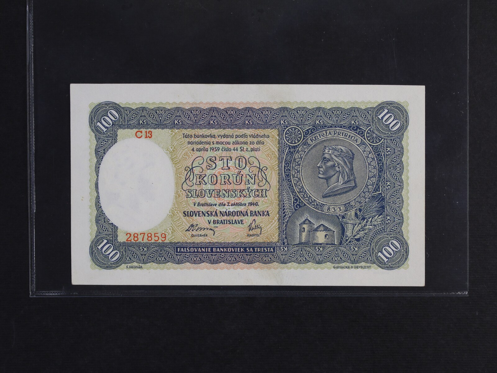 • 100 Ks 7.10.1940 série C 13 I.vydání, Ba. 48b, Pi. 10a