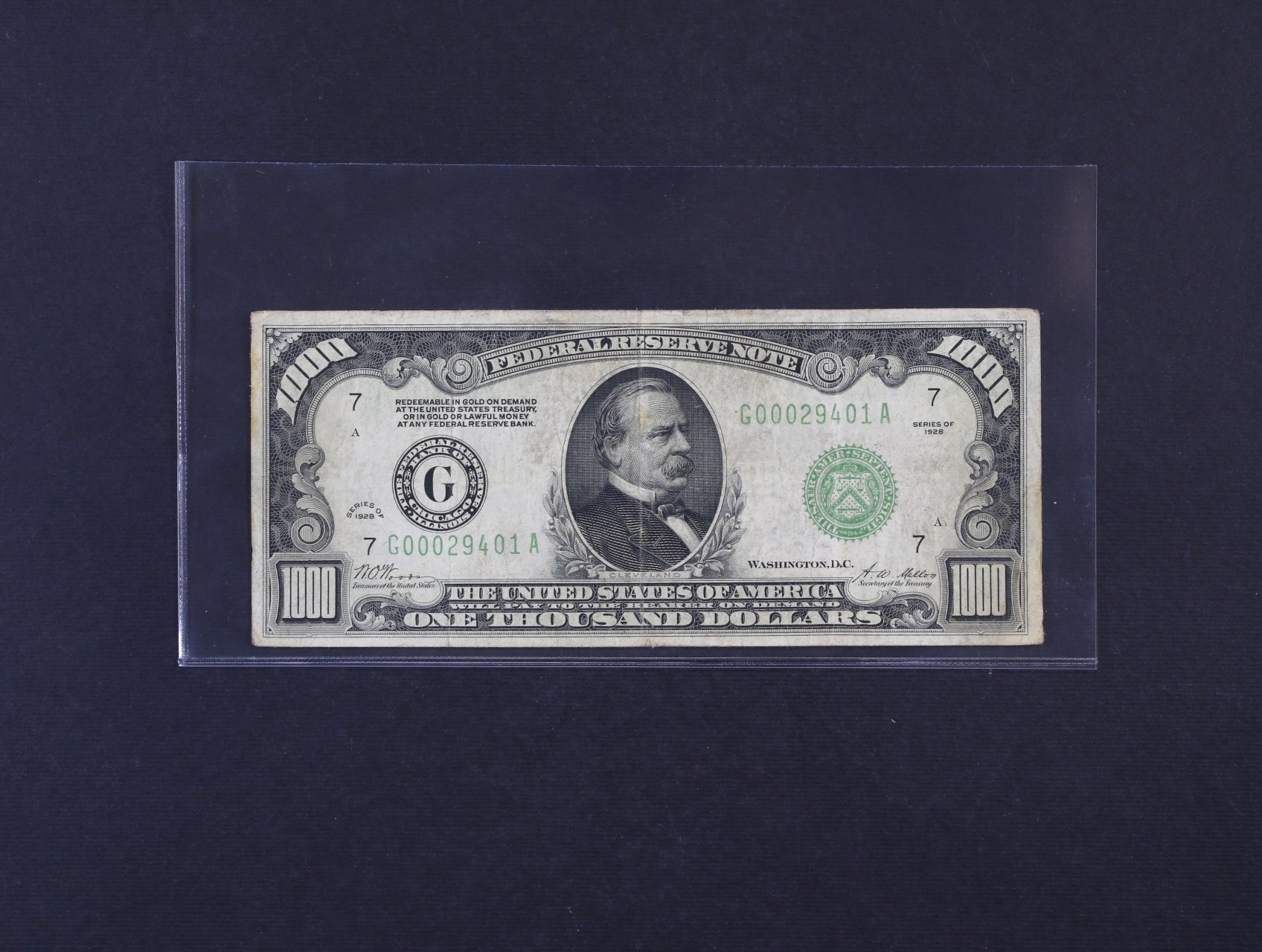 1000 Dollars 1928 (G Chicago / Illinois) Federal Reserve Note, Pi. 426, vzácný vysoký nominál