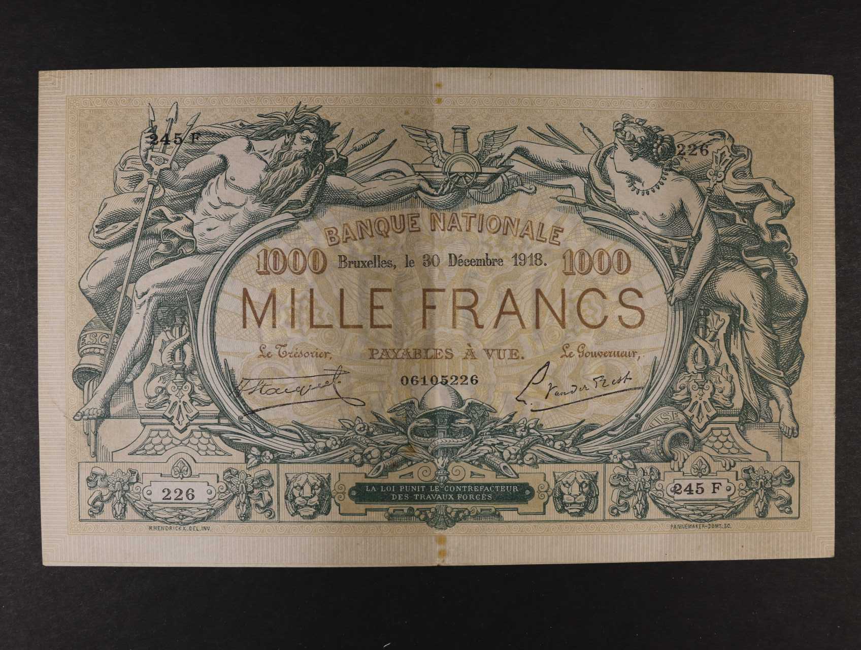 1000 Francs 30.10.1918, Pi. 73, vzácný