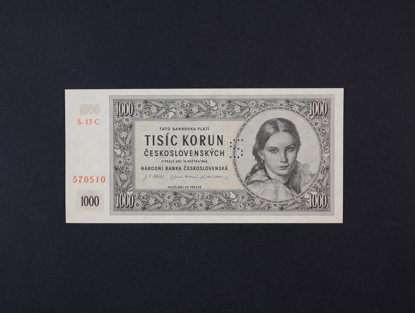 1000 Kčs 16.5.1945 série 13 C s perf. "S", Ba. 78c1, Pi. 74s, He. 79 S3